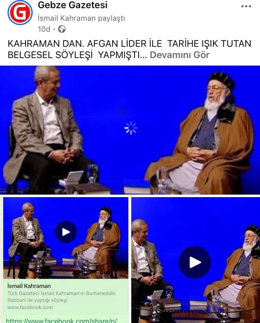 Burhaneddin Rabbani ile son görüşen Türk gazeteci Gazetemiz kurucusu ve Devr-i Alem Belgesel yapımcı araştırmacı gazeteci İsmail Kahraman oldu.