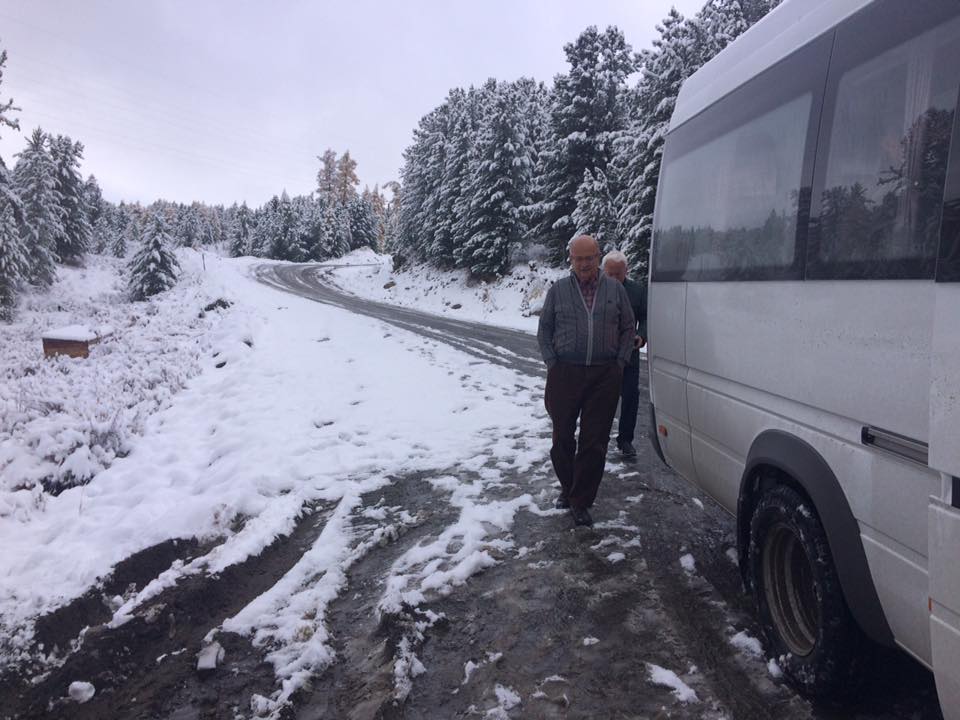 Yola çıkıyoruz . Camisi ile Altay dağları arasında bir tabloyu andıran geçmişde Rusların civa fabrikası kurduğu tarihi Altay köyünden geçerek Altay dağlarına tırmanmaya başlıyoruz . Dağların arasındaki cansız gölü geçiyoruz. Dağların zirvesine yükseldikçe kendimizi adeta masal dünyasında hissediyoruz . Ağaçlar gelin gibi beyaza bürünmüş dönmüş göllerden karla kaplı kazak yaylalarından geçerek Altay dağının 2000 metrelik zirvesine geliyoruz.
