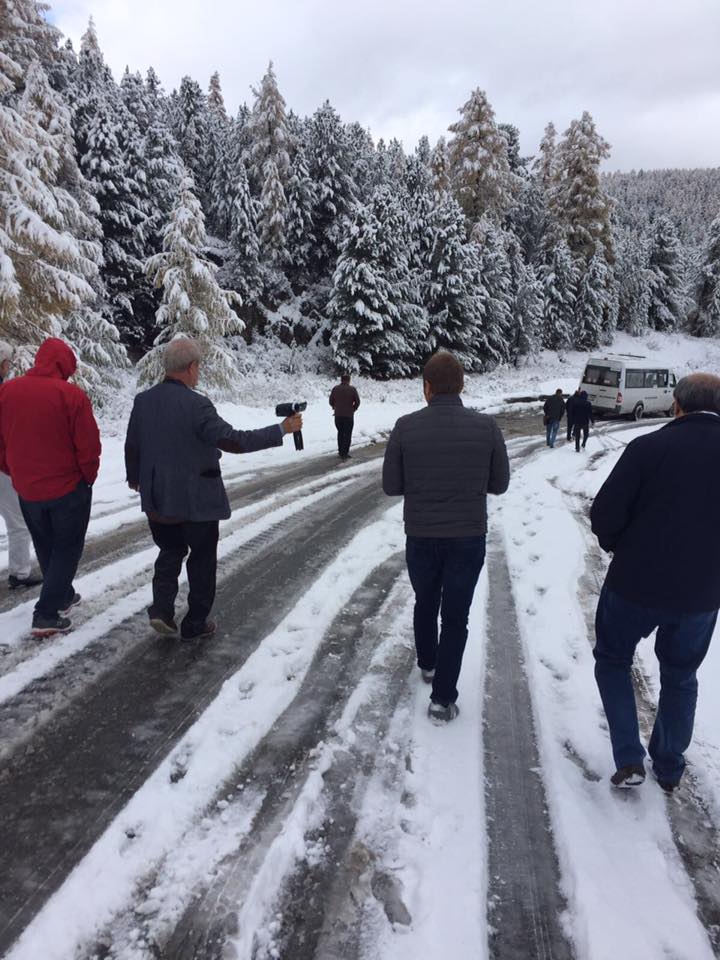 Zirveden inişe geçerken aracınız kayıyor yol buzlarla kaplı araçdan inip yürümeye başlıyoruz tehlikeli bölgeyi zorlukla aşıp Ergenekon ovasına doğru yola devam ediyoruz