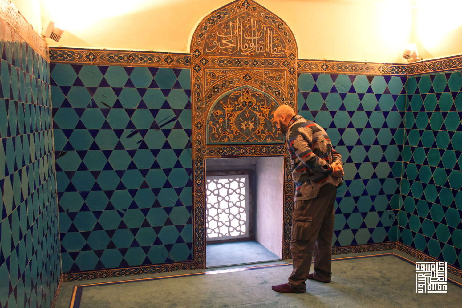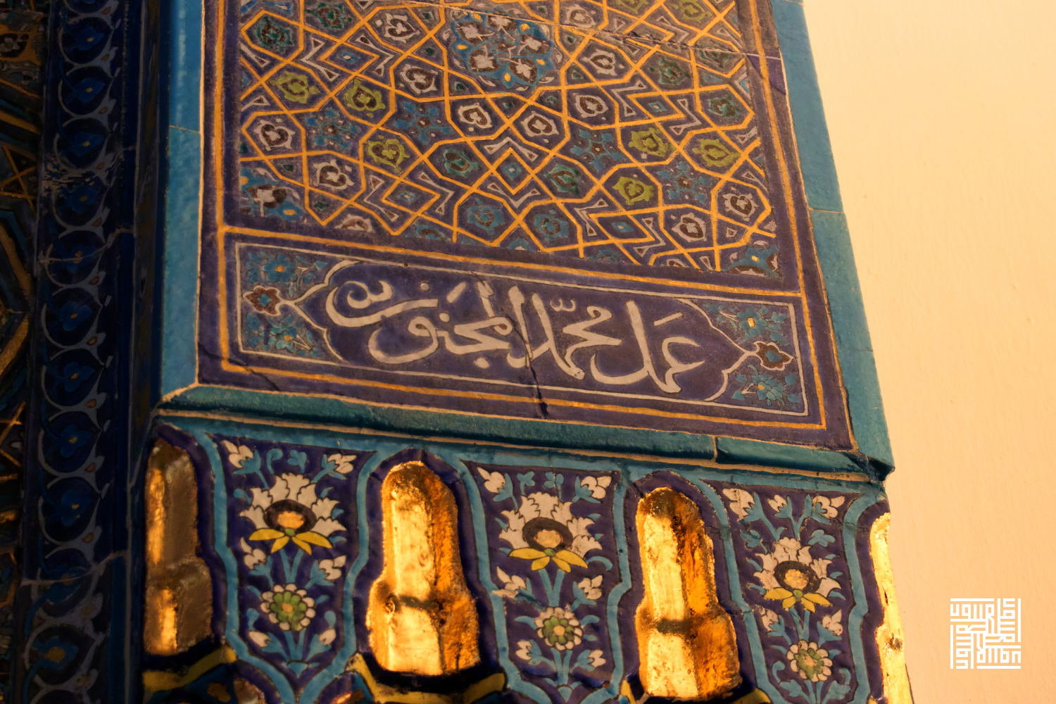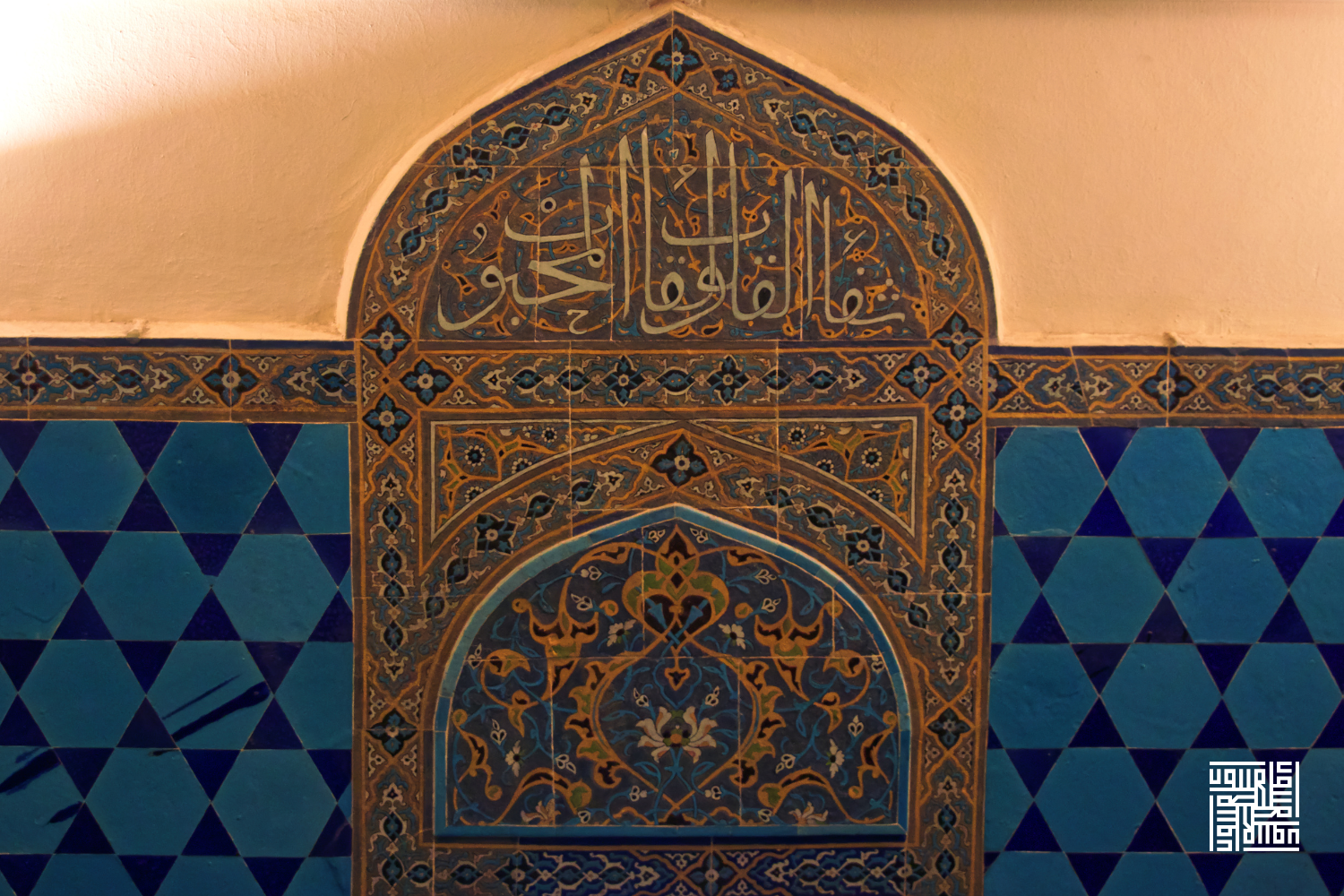 Fotoğraftaki çini pano üzerinde Arapça "Amel-i Muhammed el-Mecnun" (Muhammed el-Mecnun'un işidir) yazmaktadır.
