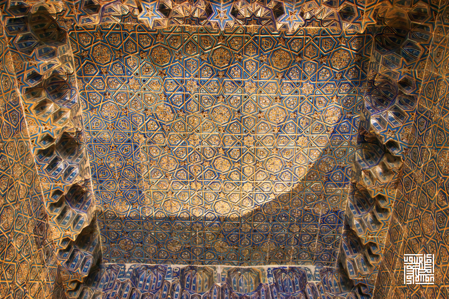 Bursa Yeşil Cami hünkar mahfilinin tavanını bir mücevher gibi süsleyen bu eşsiz kompozisyon,