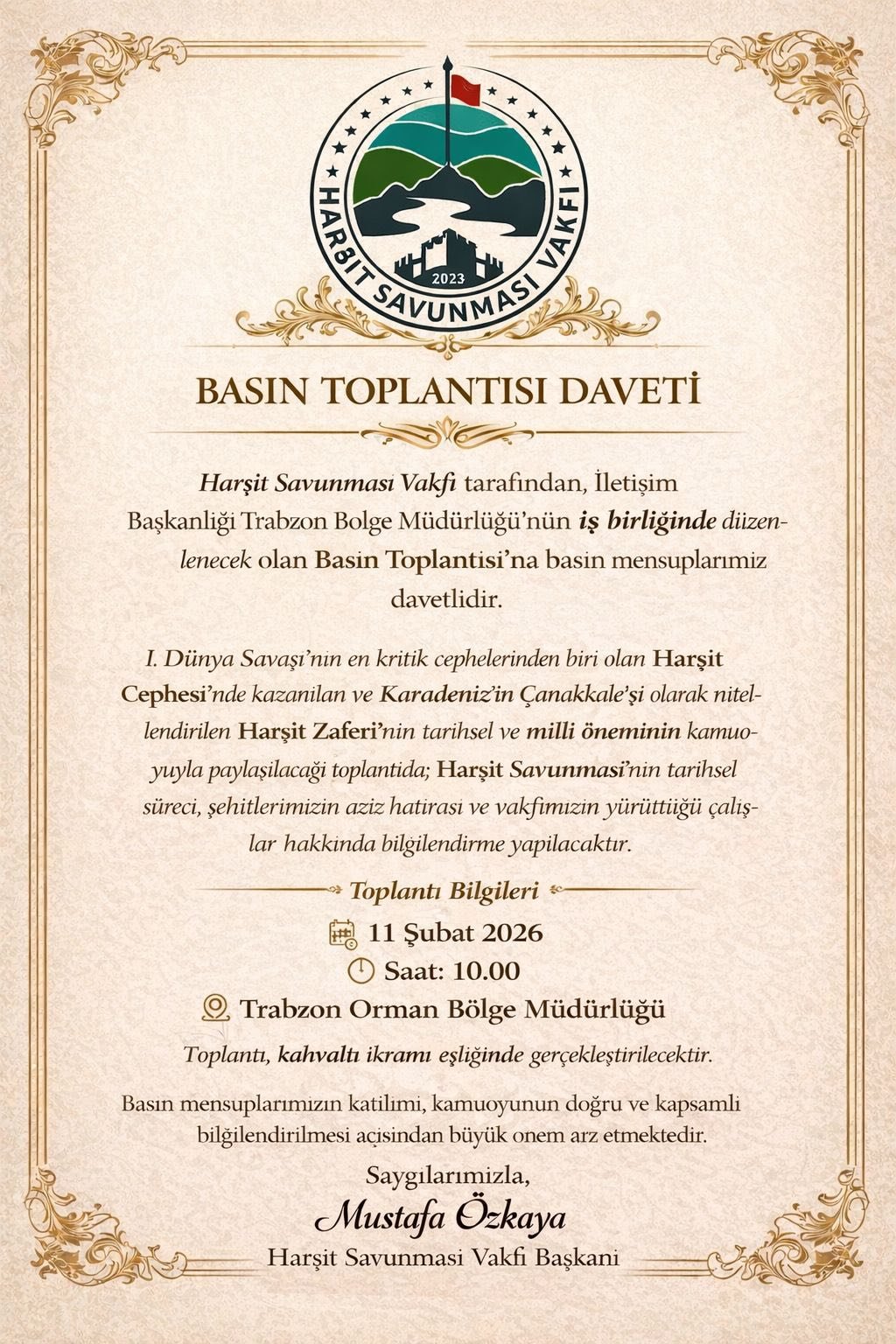11 Şubat 2026 tarihinde Trabzon orman bölge müdürlüğünde HARŞİT savunması vakfı başkanı ve orman genel müdür yardımcısı Sn Mustafa Özkaya nın düzenlediği basın toplantısı büyük ilgi gördü.