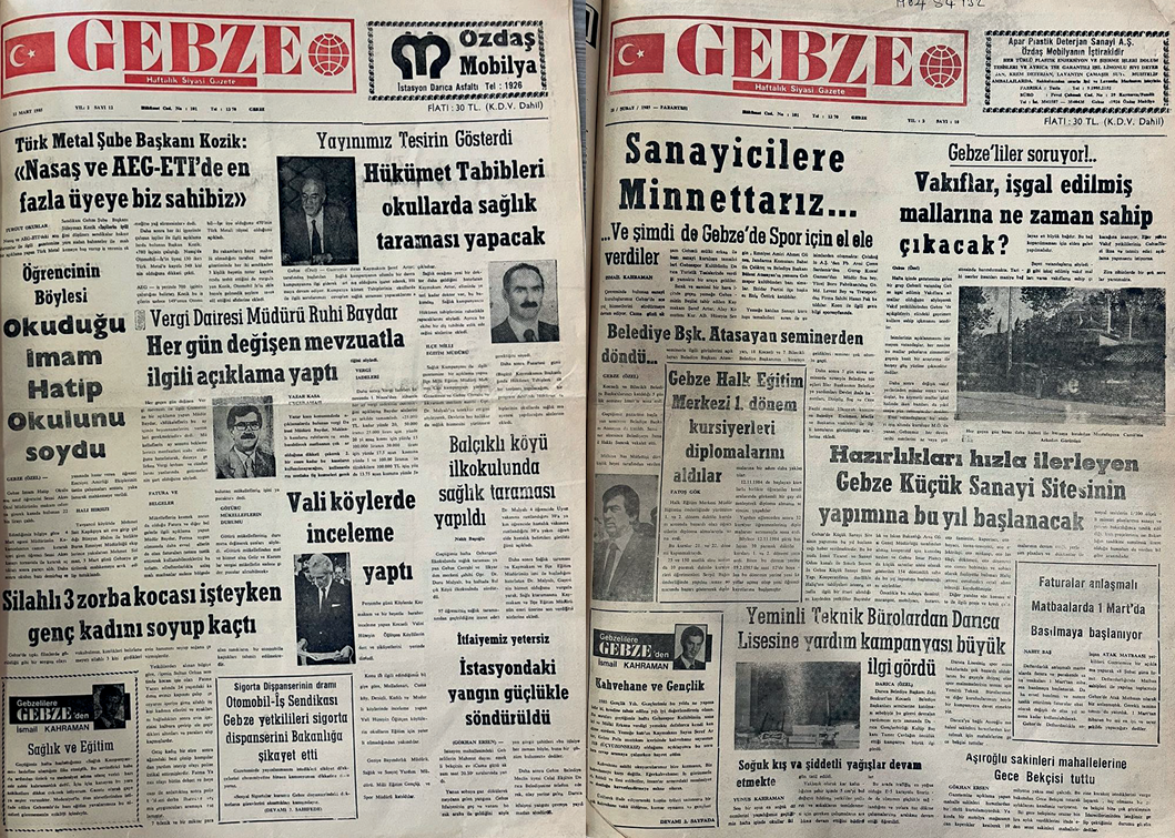 Gebze Gazetesi'nin yayın hayatına başladığı 3 Aralık 1984 tarihli ilk sayıları, kentin yakın tarihi açısından paha biçilmez birer kaynaktır. Kurucu Genel Yayın Yönetmeni İsmail Kahraman tarafından Ankara Millî Kütüphane arşivinden temin edilen bu önemli eserler, İlim Kültür Tarih Araştırmaları Merkezi (İKTAV) Vakfı Kütüphanesi koleksiyonuna kazandırılmıştır.