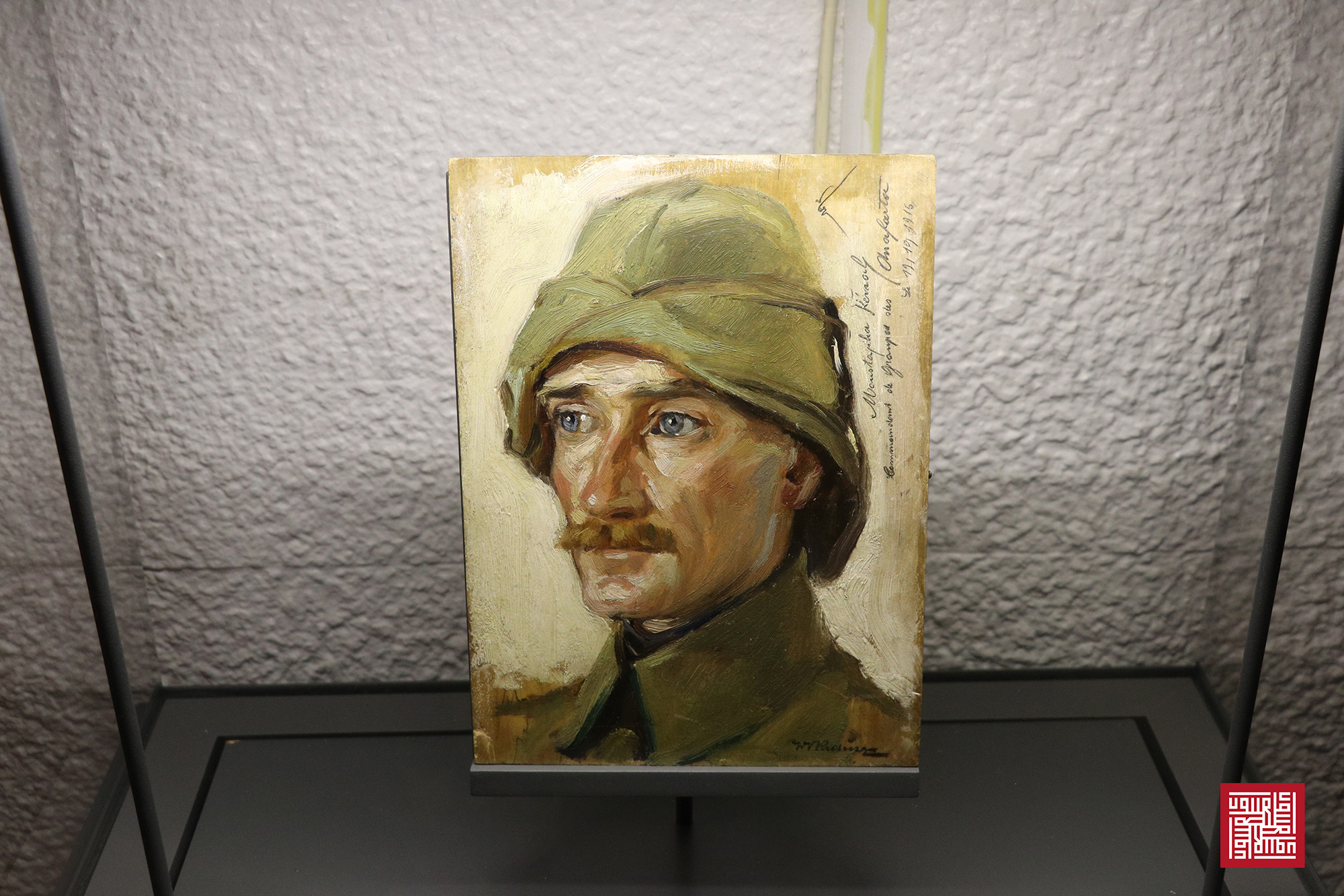 1915 yılında, Çanakkale Cephesi'nin en kritik noktalarından biri olan Anafartalar'da Wilhelm Victor Krausz, Atatürk’ten izin alarak körüklü makinesi ile onun fotoğrafını çekmiş, daha sonra da 19x25,5 cm boyutlarında küçük bir ahşap levha üzerine yağlı boya ile bu eseri yapmıştır. Atatürk’ün bilinen ilk portresi olan bu eser, Atatürk’ün karakteristik yüz hatlarını ve mavi gözlerindeki kararlılığı çarpıcı bir şekilde yansıtmaktadır.