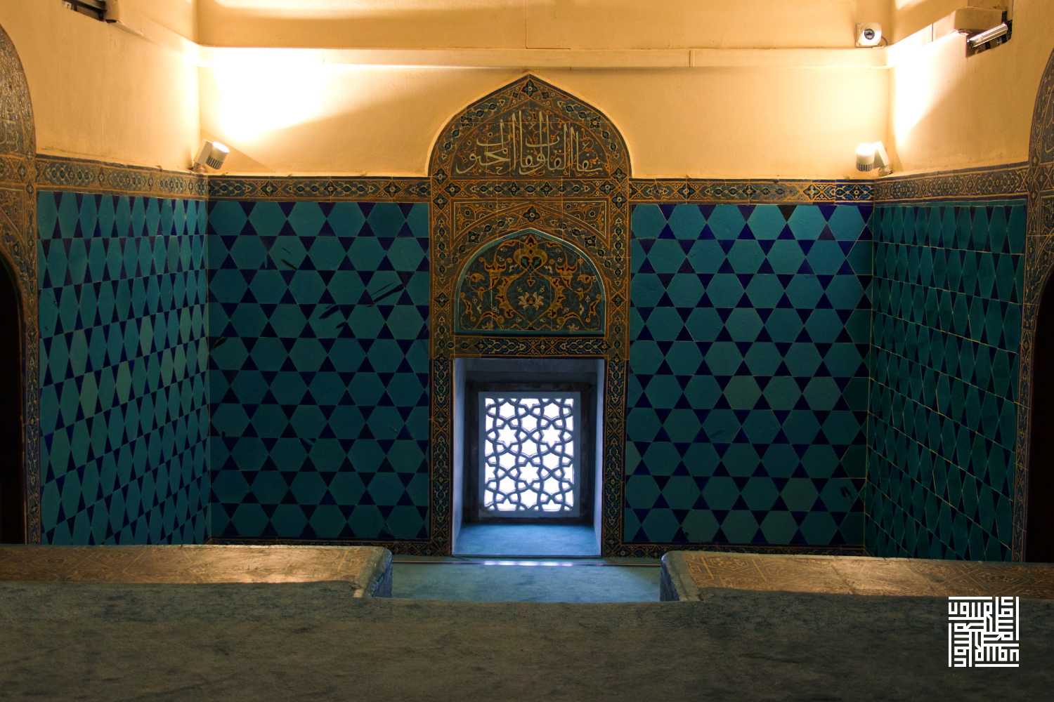Fotoğraftaki çini pano üzerinde Arapça "Amel-i Muhammed el-Mecnun" (Muhammed el-Mecnun'un işidir) yazmaktadır.