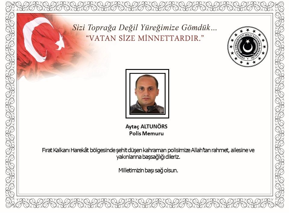 Suriye'de, Fırat Kalkanı bölgesinde yer alan Mare Soran'da, teröristlerce yapılan saldırıda şehit olan özel harekat polisi Aytaç Altunörs'ün (34) acı haberi, Malatya'daki ailesine ulaştı. Suriye'nin Mare bölgesinde devriye görevi yapan özel harekat polislerinin bulunduğu araca PKK/YPG'li teröristler tarafından havan ve roketli saldırı yapıldı. Saldırıda araçta bulunan özel harekat polisi Aytaç Altunörs şehit oldu, 1 polis yaralandı. Altunörs'ün şehadet haberi, Bostanbaşı Caddesi'nde oturan ailesine yetkililer tarafından verildi. Acı haberi alınca baygınlık geçiren şehit yakınlarına, sağlık görevlileri müdahale etti. Şehidin evine Türk bayrakları asıldı. Bekar olan şehit polis Altunörs'ün cenazesinin, yarın ikindi vakti kılınacak cenaze namazının ardından toprağa verileceği öğrenildi.