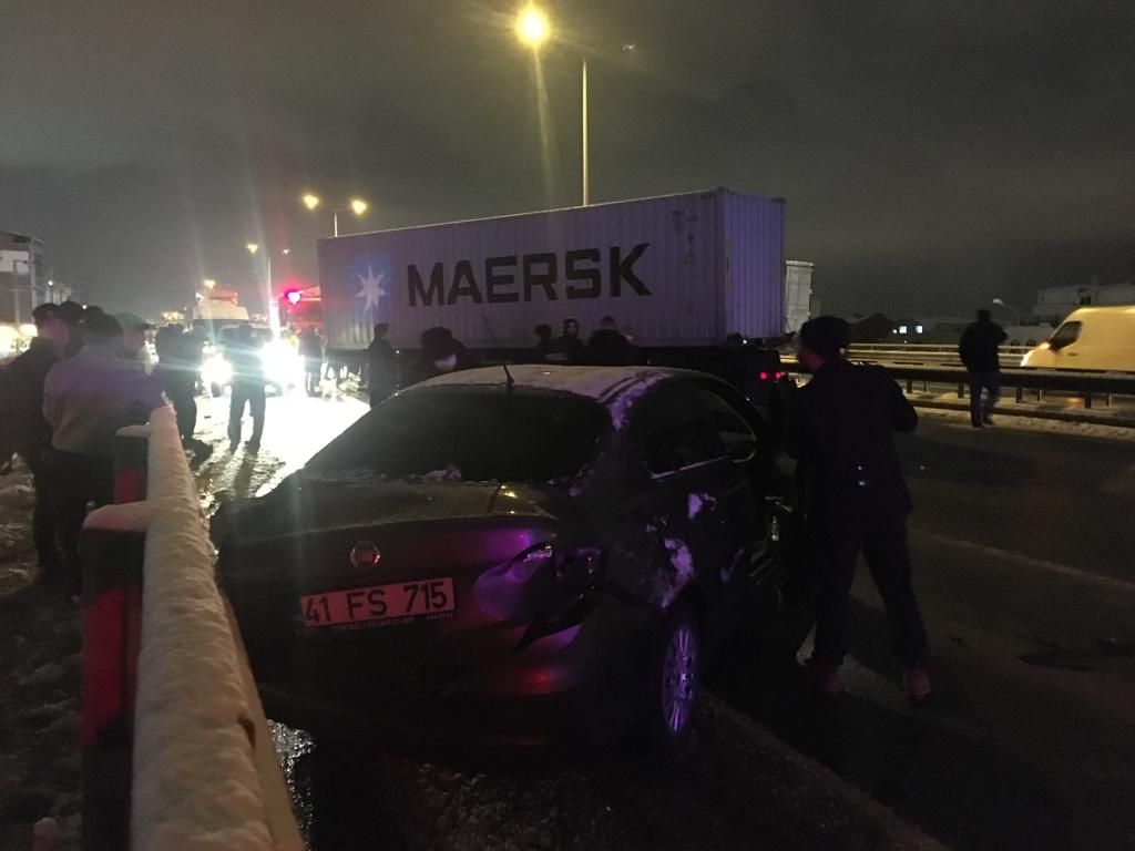 Kaza, akşam saat 21.00 sularında D-100 Karayolu Körfez Tütünçiftlik Viyadüğü üzerinde meydana geldi. Gizli buzlanmadan dolayı önce İstanbul istikametinde daha sonra da Ankara istikametinde araçlar kayarak birbirine girdi. 5 ayrı noktada meydana gelen kazada 13 araç birbirine girdi. Viyadüğün üstü adeta savaş alanına dönerken, iki yönde de uzun araç kuyruğu oluştu. Polis, viyadük girişlerini tamamen trafiğe kaparken, yan yoldan ulaşım sağlandı. Kazada iki sürücü yaralanırken, yaralılar ambulansla Derince Eğitim ve Araştırma Hastanesi'ne kaldırıldı. Kaza yapan araçlar çekici ile kaldırılmaya başlandı.