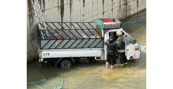 Olay, saat 14.00 sıralarında Yahya Kaptan Mahallesi Bestekar Amir Ateş Caddesi'nde meydana geldi. M.E. (43) idaresindeki kamyonet, sürücüsünün direksiyon hakimiyetini kaybetmesi sonucu demir korkuluklara çarptı. Çarpmanın etkisiyle korkuluklar yerinden sökülürken, araç dereye düştü. Çevredekilerin 112 Acil Çağrı Merkezi'ne ihbarı üzerine olay yerine itfaiye, sağlık ve polis ekipleri sevk edildi. Suya inen itfaiye eri, araç içerisinde bilinci kapalı halde bulunan sürücü M.E.'ye dakikalarca kalp masajı yaparak adeta zamanla yarıştı. Ekiplerin yoğun çabası sonucu itfaiye merdiveni yardımıyla bulunduğu yerden çıkarılan M.E., sağlık görevlilerine teslim edildi. Olay yerindeki ilk müdahalesinin ardından ambulansla Kocaeli Şehir Hastanesi'ne kaldırılan sürücünün hayati tehlikesinin devam ettiği öğrenildi.