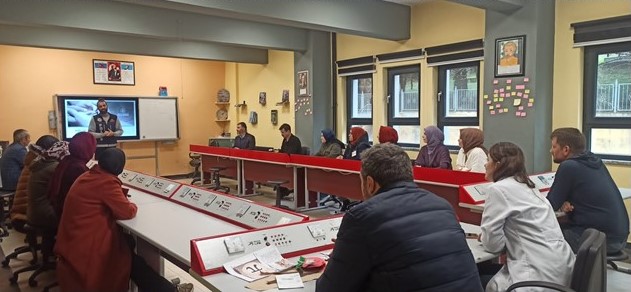 05.04.2023 günü saat 14.00' de Başiskele İlçemizde Bahçecik M.T.A.L. Toplantı Salonunda velilerden oluşan 27 kişiye En İyi Narkotik Polisi Anne projesi kapsamında eğitim verilmiş, uyuma hakkında bilgilendirme yapılmıştır.