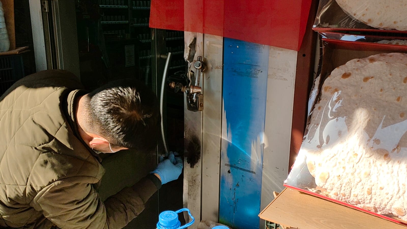 Olay yeri ekipleri, kapıdan ve marketin içinden parmak izi aldı.