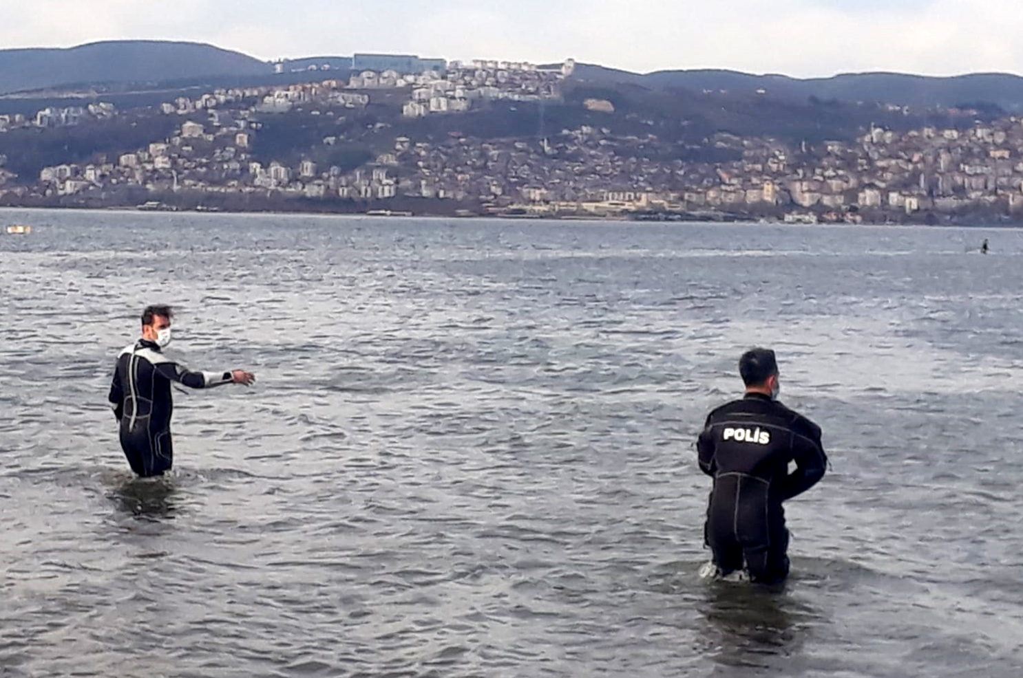 İhbar üzerine olay yerine gelen polis ve Kocaeli Büyükşehir Belediyesine bağlı zabıta ekipleri, midye avcılarından kıyıya çıkmalarını istedi.