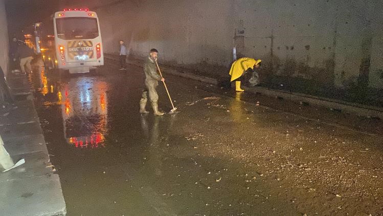 Kocaeli'nin tüm ilçelerinde sağanak yağmur devam ederken birçok ilçede de su birikintileri oluştu. Gebze ve Çayırova'da cadde ve sokaklar sular altında kaldı. Yaşanan yağış sebebiyle sürücüler zor anlar yaşarken, tünelde içerisinde biriken yağmur suyu sebebiyle 2 işçi servisi ve bir otomobil arıza yaptı. Biriken sular ve yaşanan trafik aksaklığı sebebiyle bölgelere itfaiye, polis ve Kocaeli Su ve Kanalizasyon İdaresi Genel Müdürlüğü (İSU) ekipleri sevk edildi. Tıkanan rögar kapakları açılarak su takviyesi yapılırken, ekiplerce de trafik güvenliği sağlandı. Aracı arızalanan işçi servisi şoförü Zafer Aktaş, "Tünel suyla doluydu. Su dizimize kadar geliyordu. Aracın tamponu zarar gördü, plakalarım kayboldu" dedi.