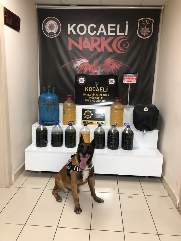Yapılan arama sonucu mutfak tüpü ve pet şişeler içerisinde gizlenmiş halde 51,5 litre sıvı metamfetamin ele geçirildi.