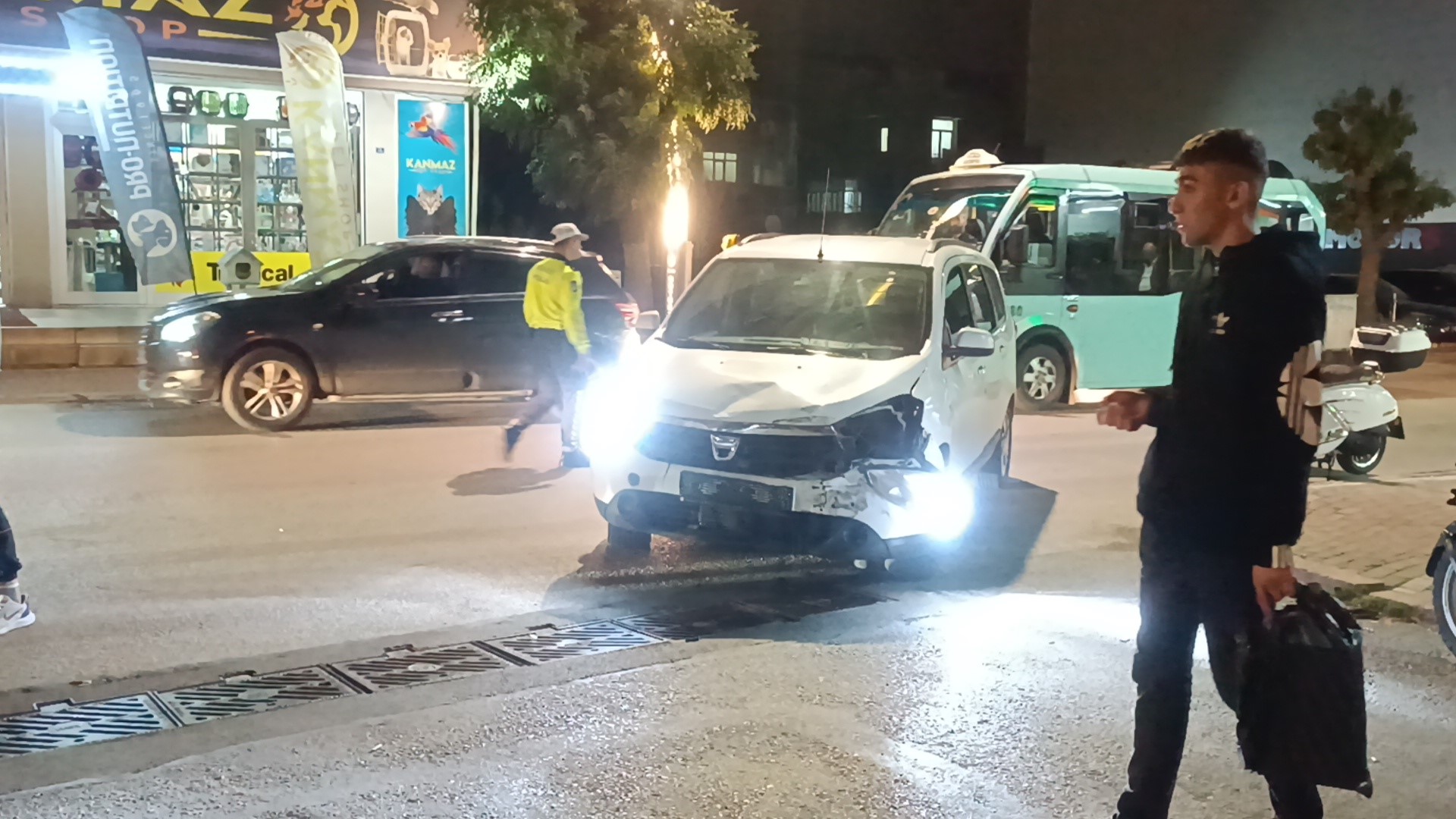 Kaza sebebiyle hafif ticari araç hasar alırken, polis olayla ilgili inceleme başlattı.
