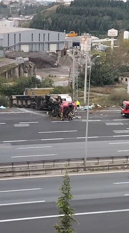Kaza, Osmangazi Köprüsü'nün Kocaeli Gebze girişi Yalova istikametinde meydana geldi. Edinilen bilgiye göre, hafifi ticari araç ile çarpışan tır devrildi. Yan yatan dorsenin bir bölümü yol kenarındaki yeşillik alana kaydı. Kazayı gören diğer sürücüler 112 Acil Çağrı Merkezine ihbarda bulundu. İhbar üzerine adrese itfaiye sağlık ve polis ekipleri sevk edildi. Polis ekipleri, herhangi bir olumsuzluk yaşanmaması için trafikte kontrollü geçişleri sağladı. Kazalı araçların kaldırılmasıyla trafik normal seyrine döndü.