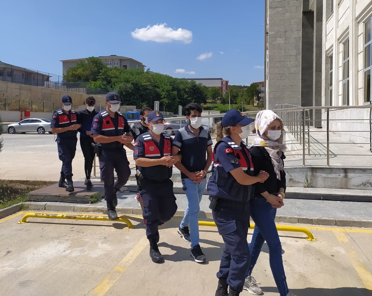 Jandarmadaki işlemlerinin ardından adliyeye sevk edilen şüpheliler, çıkarıldıkları hakimlikçe tutuklandı.
