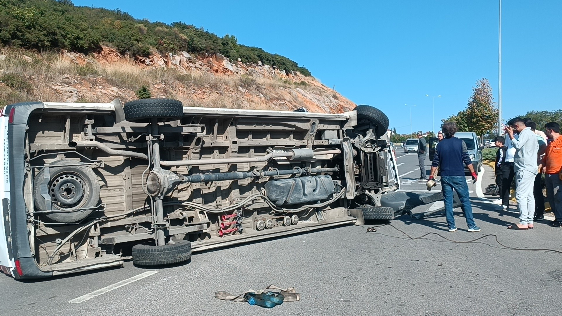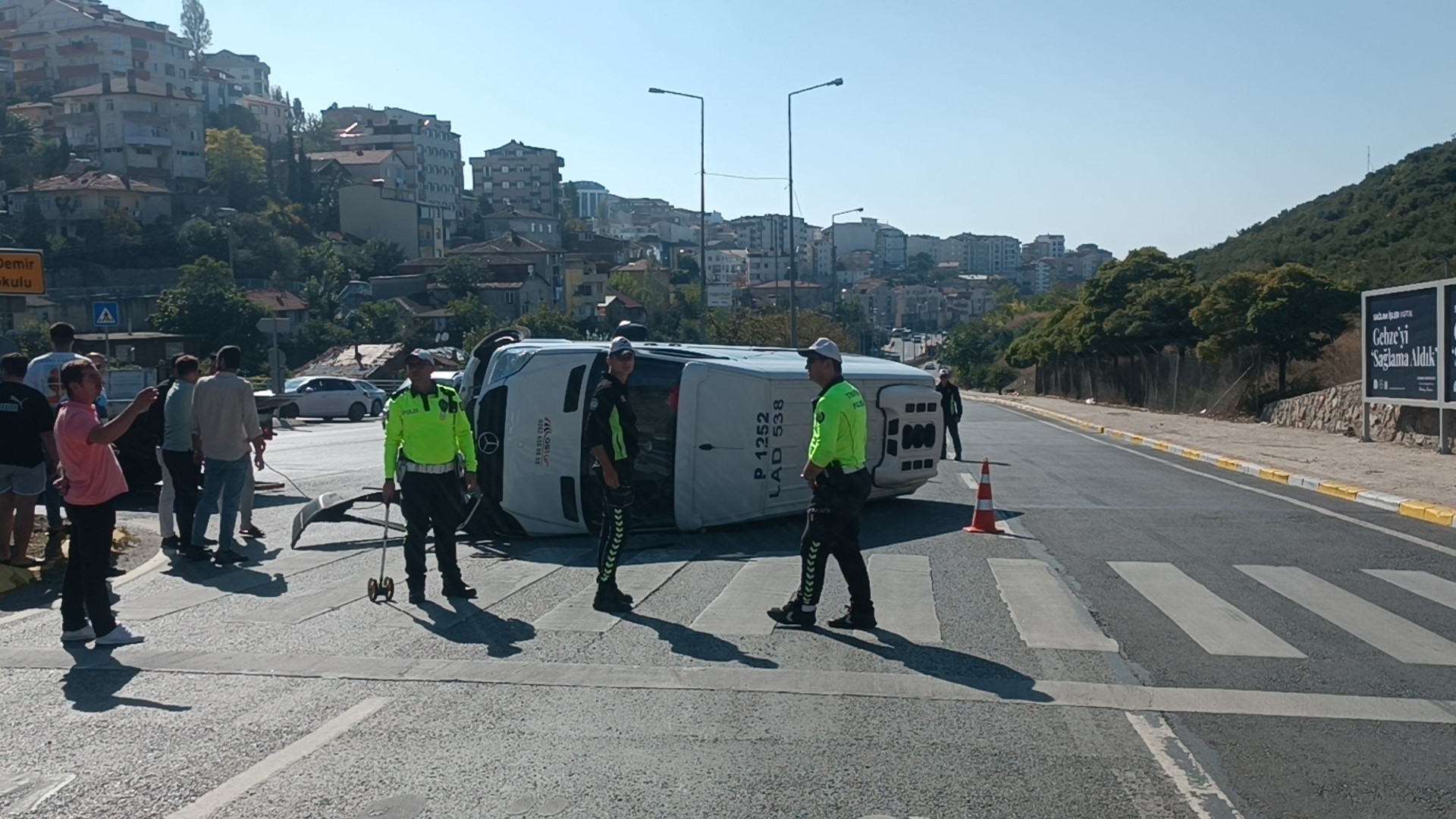 Kaza, Mevlana Mahallesi Soma Şehitleri Bulvarı ile Bahardere Caddesi kesişiminde meydana geldi. Edinilen bilgiye göre, A.Ü. idaresindeki 41 P 1252 plakalı Mercedes marka servis minibüsü virajı alamayarak devrildi. Metrelerce sürüklenen servis minibüsü karşı şeride geçmeden durabildi. Kendi imkanlarıyla minibüsten çıkan sürücü, 112 Acil Çağrı Merkezini aradı. İhbar üzerine adrese sağlık ve polis ekipleri sevk edildi. Sağlık ekiplerince ilk müdühalesi olay yerinde yapılan A.Ü., ambulansla Fatih Devlet Hastanesine götürüldü.