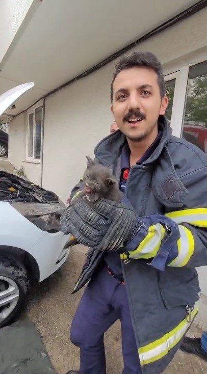 Kocaeli'nin Gebze ilçesinde otomobilin motor kısmına giren yavru kedi itfaiye ekiplerince kurtarılarak, annesine teslim edildi.