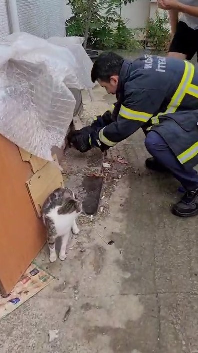 Yaramaz yavru kedi itfaiye ekiplerini uğraştırdı