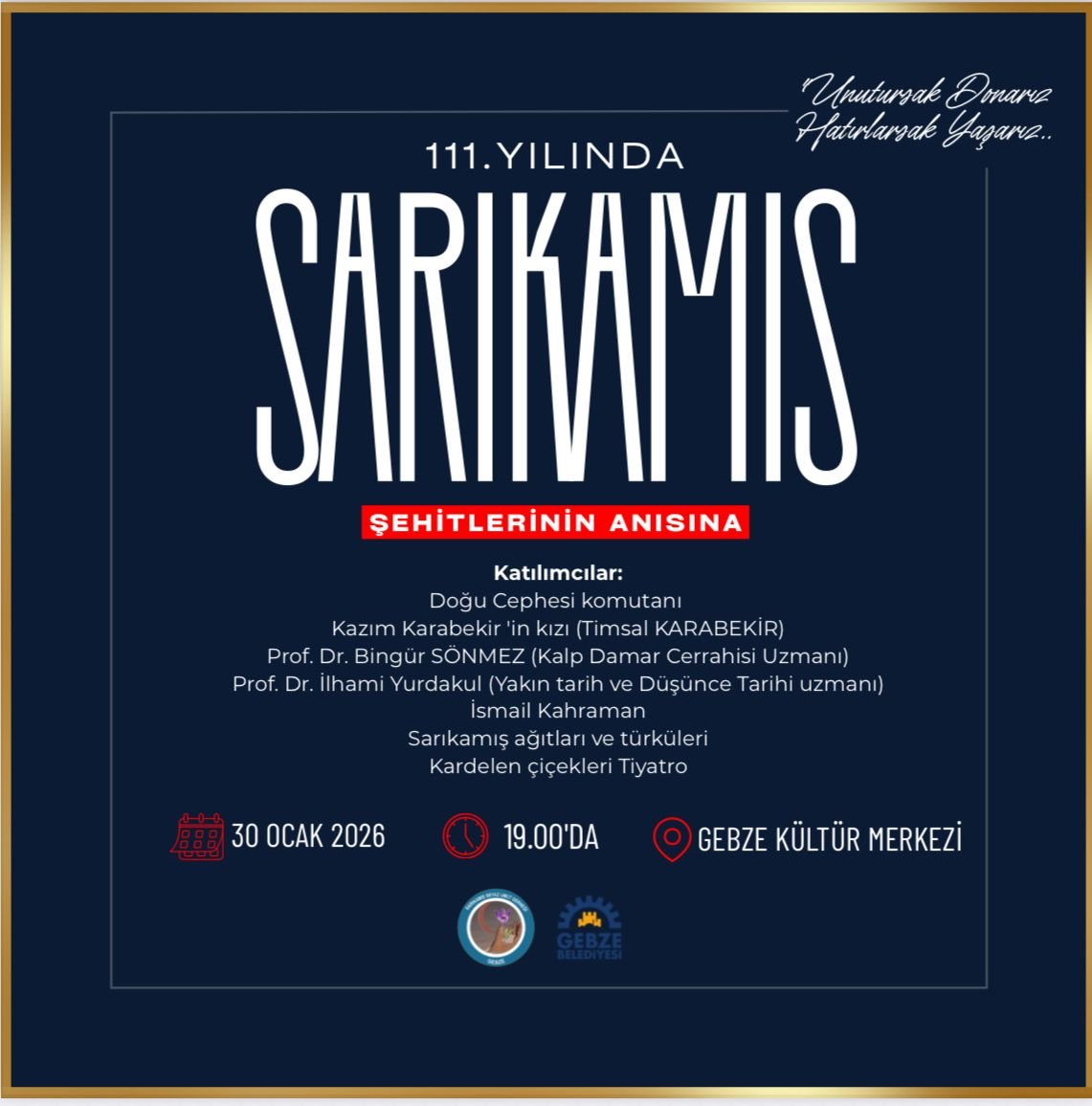 Gebze Belediyesi’nin ev sahipliğinde düzenlenecek Kafkas Cephesi Sarıkamış Şehitleri Anma Toplantısı’na: