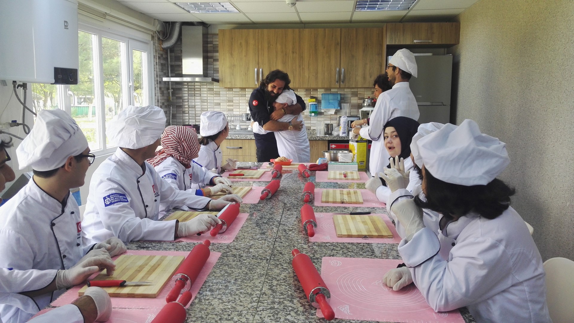 Çeşitli televizyon programlarına aşçı olarak katılan Kocaeli Üniversitesi Gastronomi Mutfak Sanatları bölümü Öğretim görevlisi Rüzgar Sünbül, Cemil Meriç’in özel öğrencileri ile birlikte Köri Soslu Tavuk ve Bulgur pilavı hazırladı. Öğrenciler yemekleri yaparken büyük bir keyif aldı.