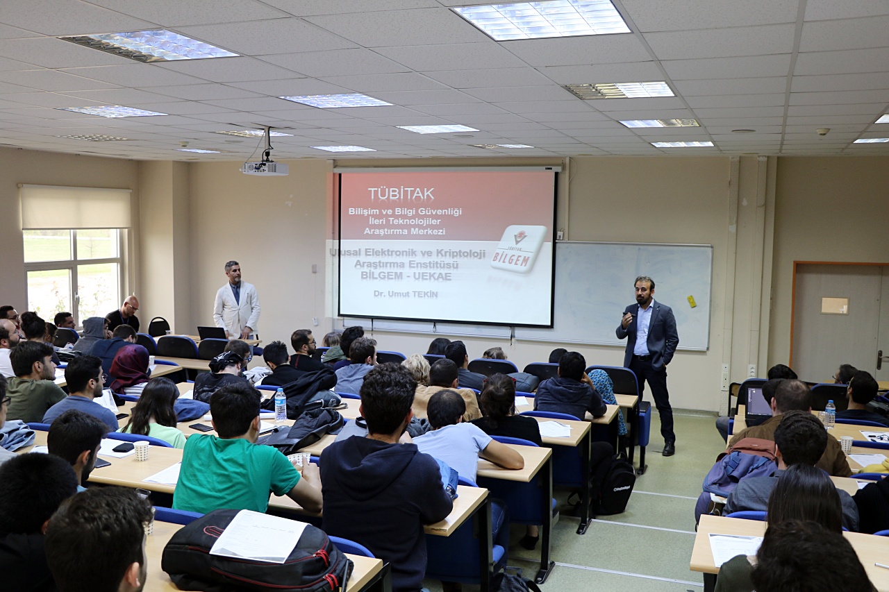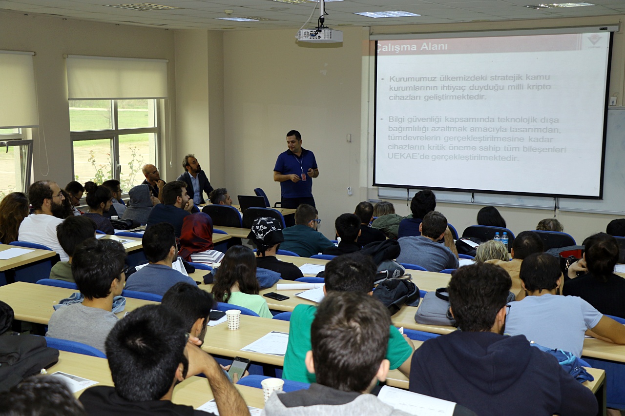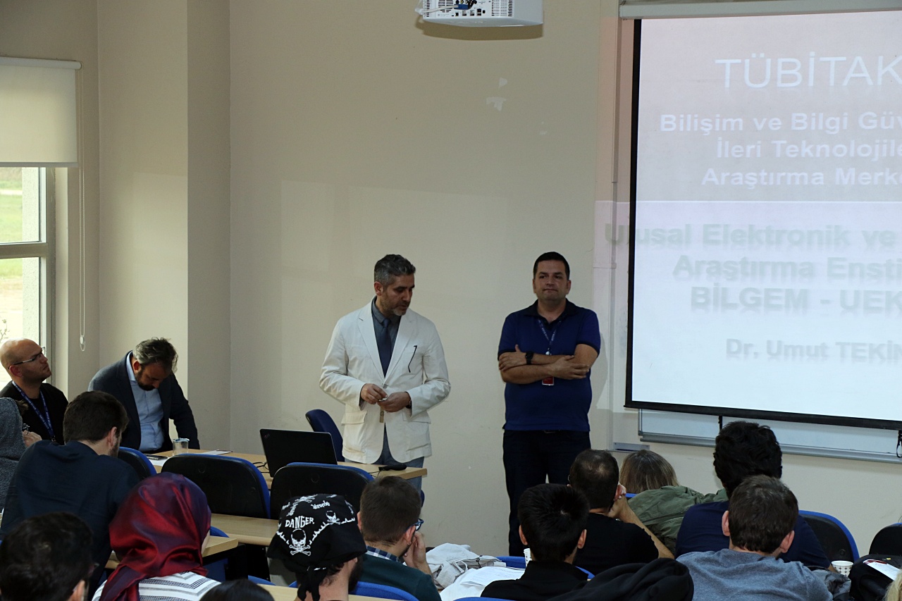 Yoğun katılımın gözlendiği etkinlikte BİLGEM’in proje yöneticileri ve uzmanlarından; Dr. Umut Tekin, Dr. Kaya Demir, Dr. Fatih Kahraman kriptoloji, görüntü kıymetlendirme, tümdevre tasarımı gibi bilişim teknolojileri alanında yürüttükleri projeleri anlattılar. Projelere öğrencileri dahil etmek istediklerini belirten yetkililer;” Sizleri paydaş olarak görüyoruz. BİLGEM çatısı altında ülkemizin ihtiyacı olan teknolojilerle ilgili Ar-Ge yapıyoruz. Sizleri de aramızda görmek istiyoruz.” ifadelerini kullandılar.