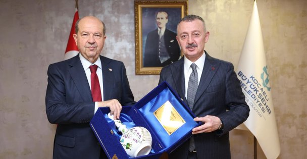 Kuzey Kıbrıs Türk Cumhuriyeti’nin 5. Cumhurbaşkanı Ersin Tatar, Kocaeli Üniversitesi Uluslararası İlişkiler Kulübü’nün davetlisi olarak Kocaeli’ye geldi. Ersin Tatar ikinci günkü programına, Kocaeli Büyükşehir Belediye Başkanı Tahir Büyükakın’ı ziyaret ederek başladı. Başkan Büyükakın’ın makamında ağırladığı Ersin Tatar, ilk olarak Kocaeli Büyükşehir Belediyesi Şeref Defteri’ni imzaladı. Ardından Başkan Büyükakın, konuk Cumhurbaşkanı Tatar’a hediye takdiminde bulundu. Başkan Büyükakın, Kocaeli Büyükşehir Belediyesi’nin çalışmaları hakkında bilgi verdiği Ersin Tatar’a ziyaretinden dolayı teşekkür etti. Tatar da misafirperverliği için Başkan’a teşekkürlerini sundu.