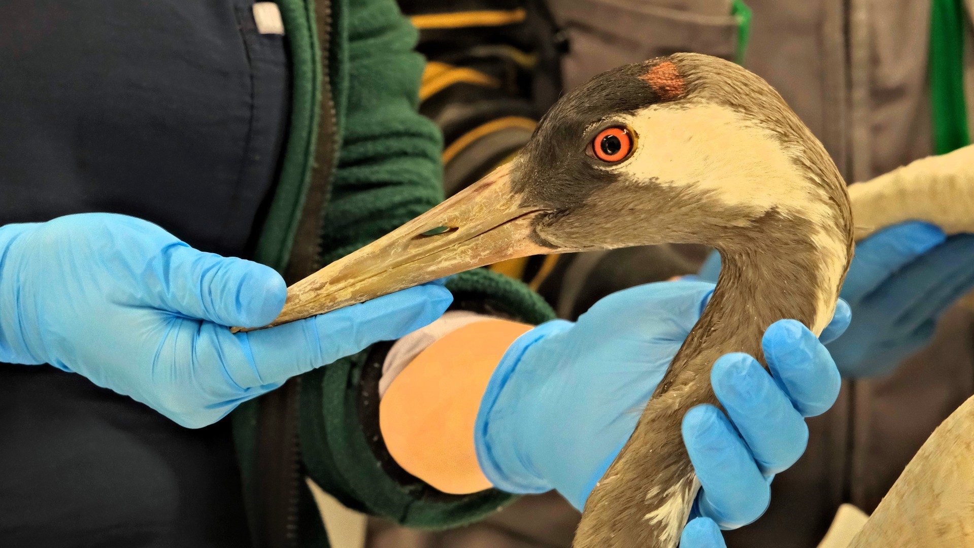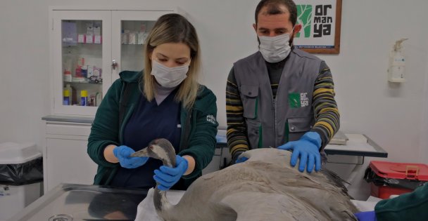 Sakarya Doğa Koruma ve Milli Parklar ekiplerince yaralı bulunan göçmen kuş, tedavi edilmek üzere Kocaeli'deki merkeze getirildi. Trafik kazası veya travmaya bağlı yaralanma şüphesiyle merkeze ulaştırılan turnanın, veteriner hekimler tarafından fiziki muayenesi ve radyolojik tetkikleri yapıldı. İncelemelerde kalça bölgesinde doku zedelenmesi ve kırık tespit edilen kuşa ilk müdahalesi yapılarak stabilizasyon sağlandı.