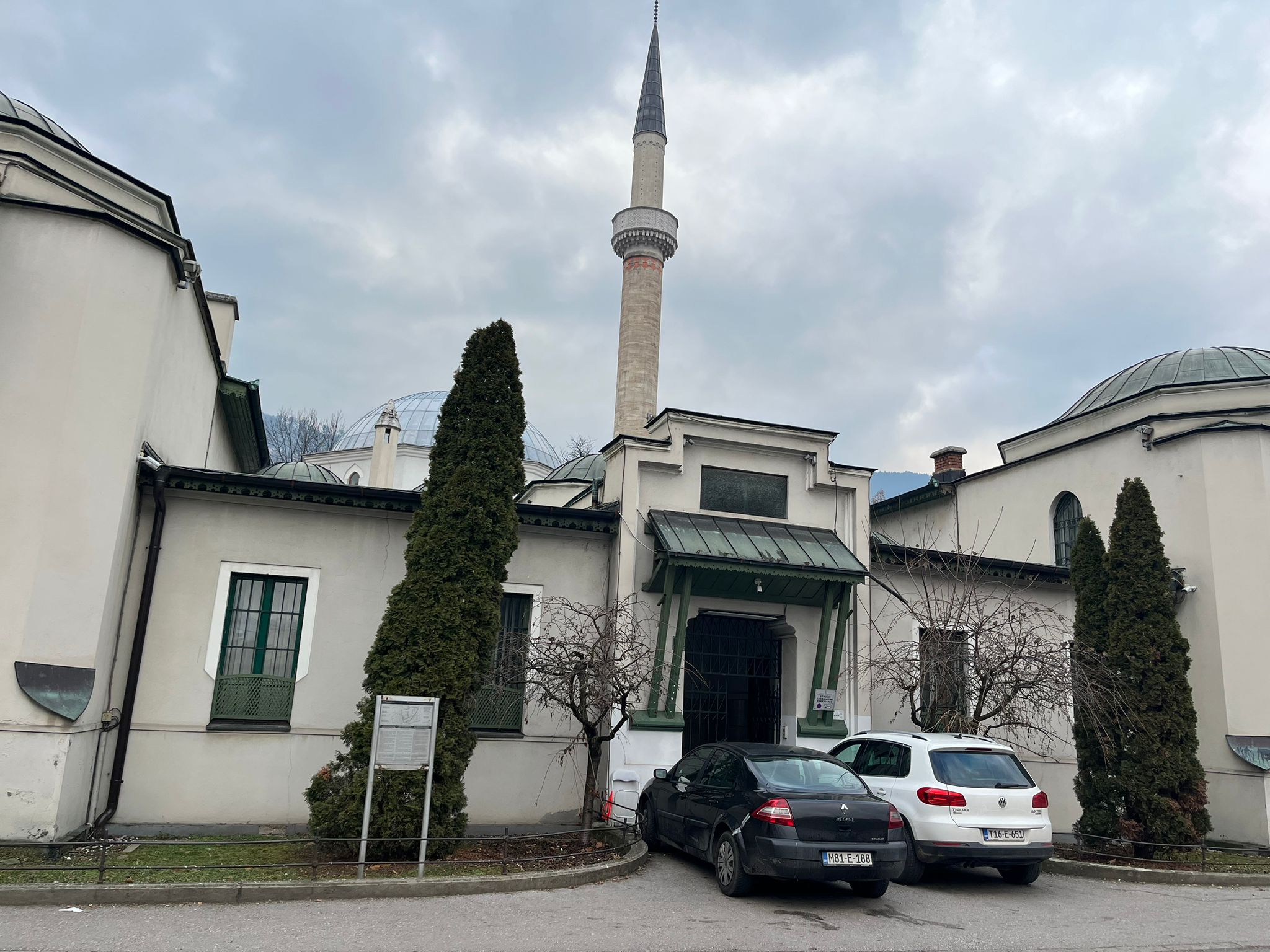 Fatih veya Hünkar camisi. İsa beyin sarayını yaptığı bu gün park olan alana çok yakın İsa beyin vakfı cami duvarında asılmış cami haziresindeki mezar taşları Saraybosna tarihine ışık tutuyor Saraybosna’nın kurucusu İsa beyin cami mihrabının önündeki bahçede bulunan mezarında Fatiha okuyup dua ediyoruz