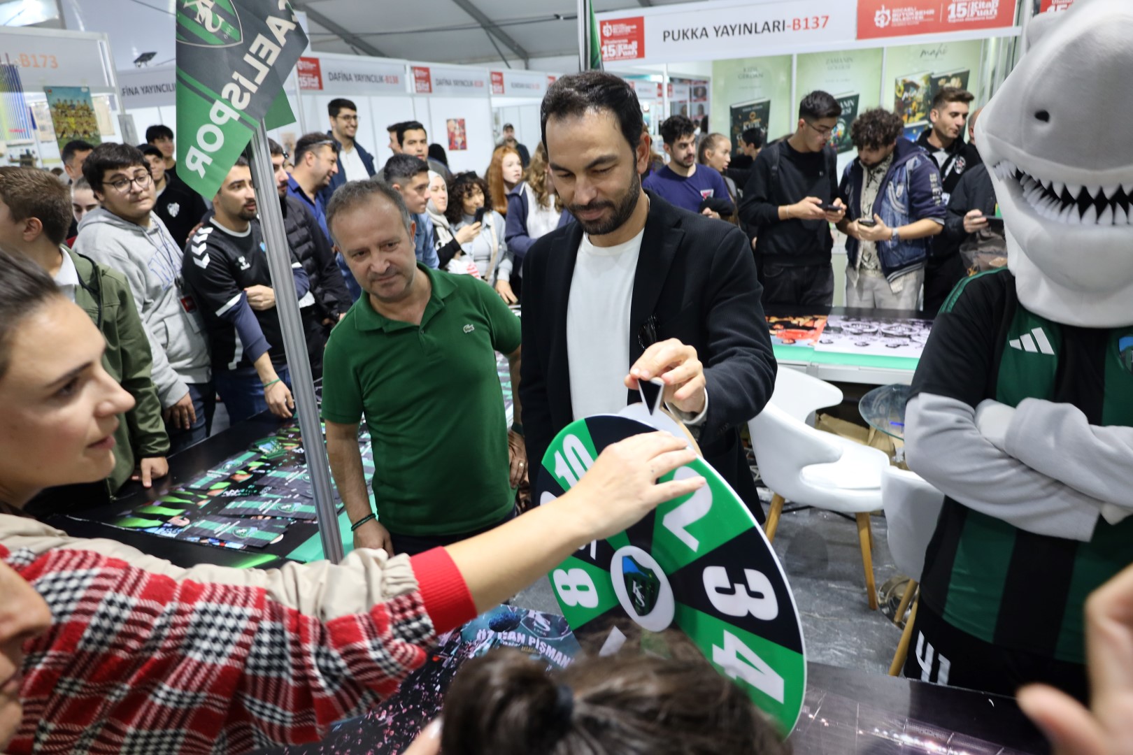 Uluslararası 15. Kocaeli Kitap Fuarı, tüm renkleriyle sürüyor. Söyleşilerden imza gününe, yarışmalardan panellere kadar birçok etkinliğin yer aldığı kitap fuarında bir hafta geride kaldı. Fuarın en renkli stantlarından olan Kocaelispor standı yeşil-siyahlı ekibin teknik direktörü Selçuk İnan, kaleci Gökhan Değirmenci ve Malili futbolcu Massadio Haidara’yı ağırladı.