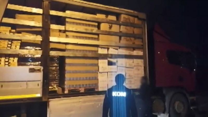 Arama işleminde 1 ton 66 kilogram ağırlığında 8 bin 960 paket bandrolsüz kaçak nargile tütünü bulundu.