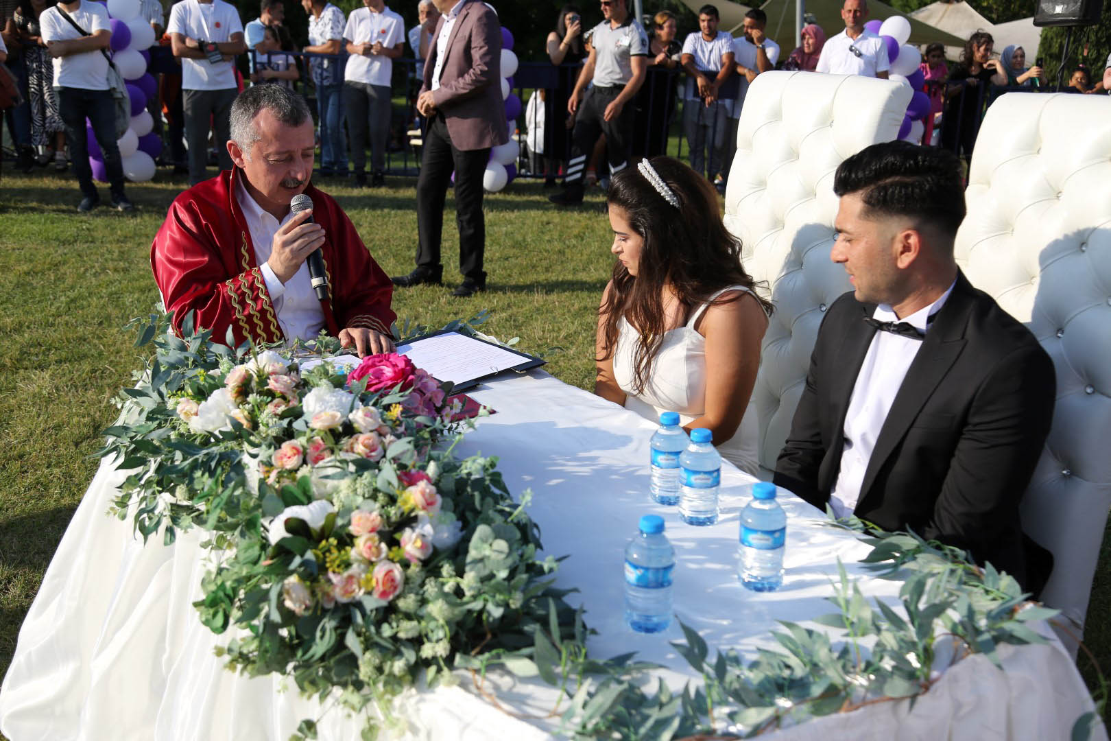 Daha sonra alandaki ilçe belediye başkanları ve nikâh memurları tarafından diğer çiftlerin de nikâhları kıyıldı. 36 çift Başkan Büyükakın’ın kıydığı nikâhla bir ömür birlikteliğe “evet” dedi.