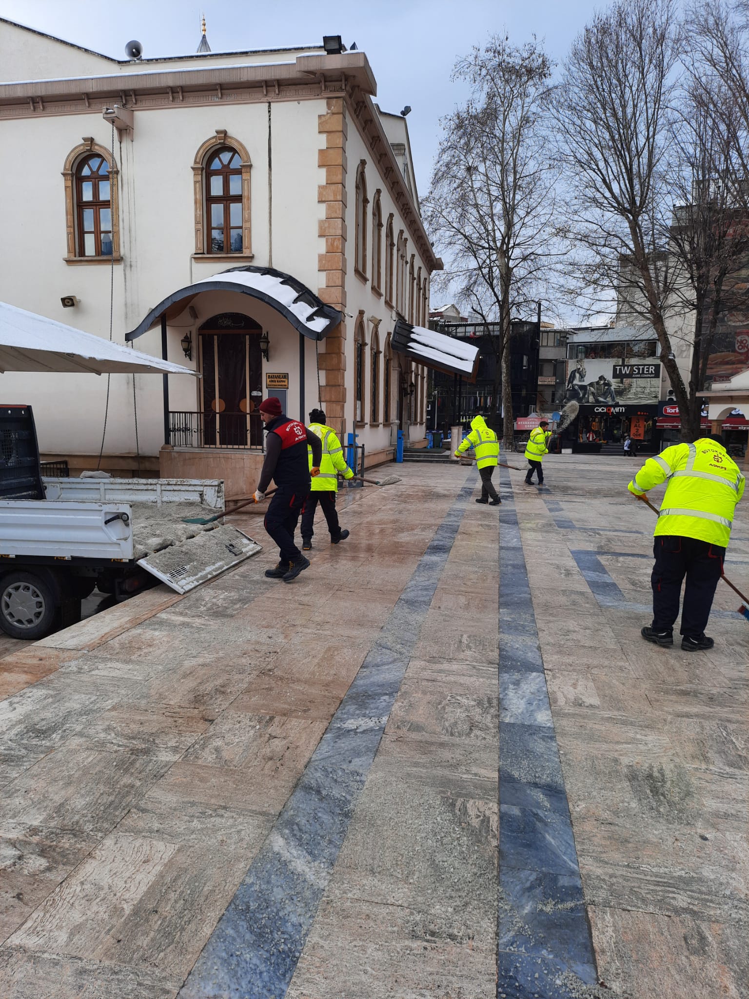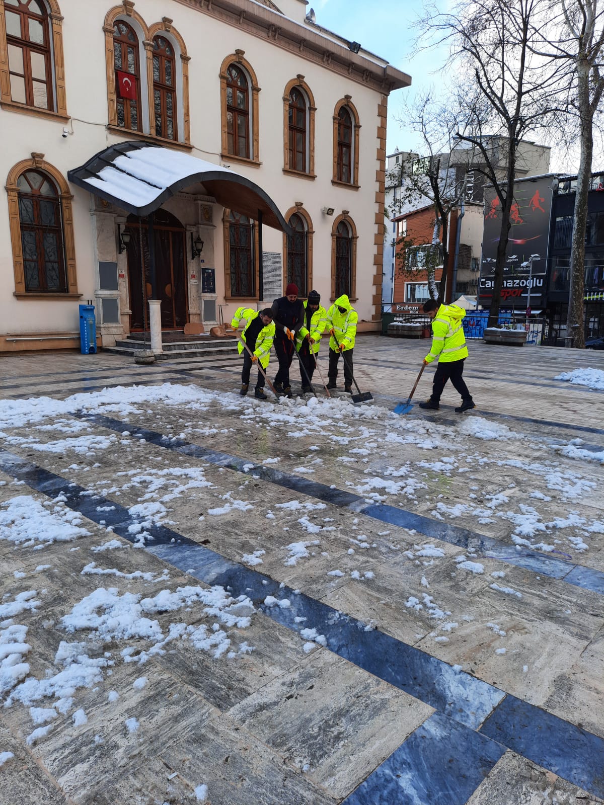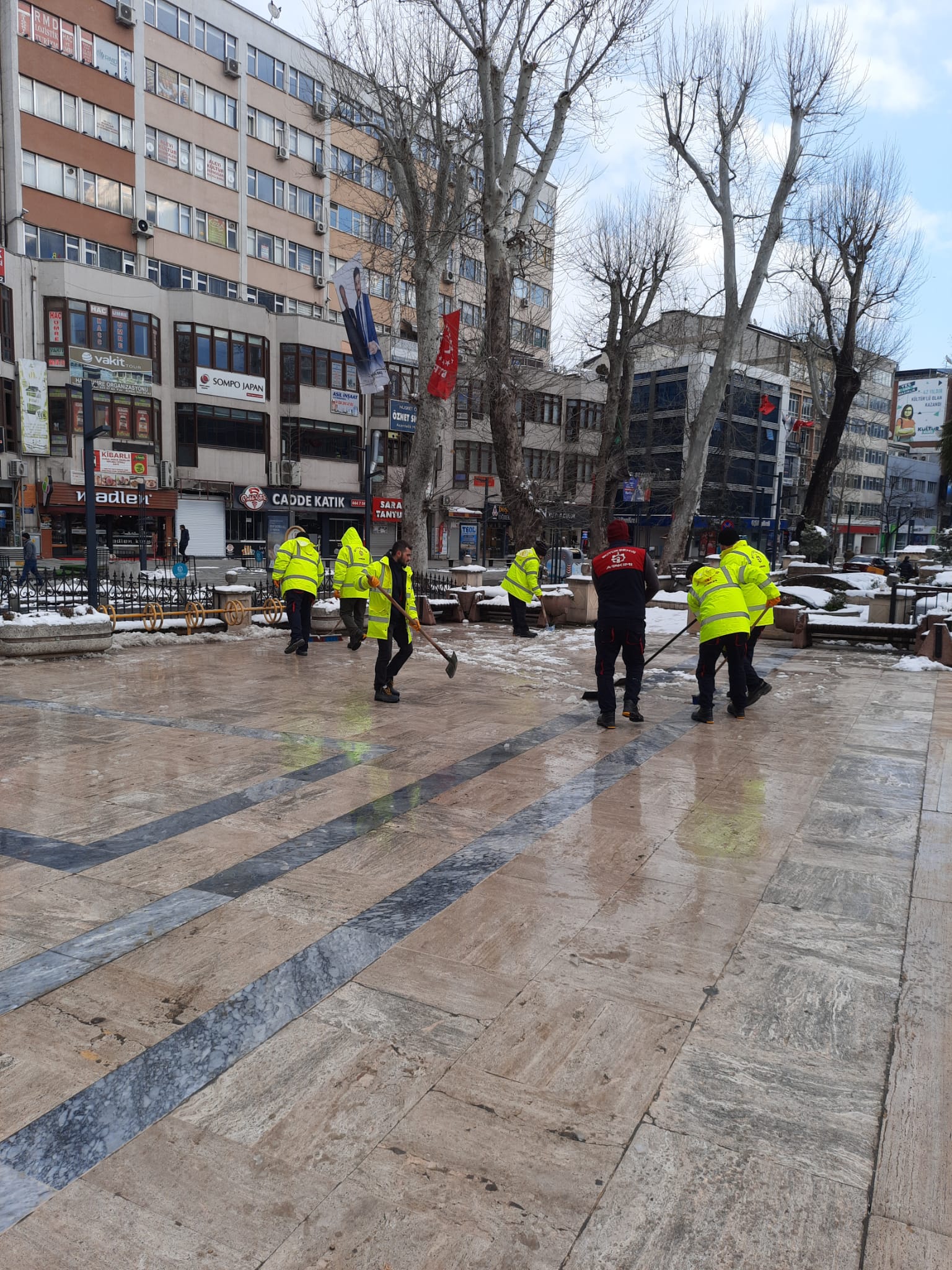 Günün 24 saati teyakkuzda olan ekipler, halkın ortak kullanım alanı olan üstgeçitler, aile sağlığı merkezleri, otobüs durakları, kamu binalarının önü, ibadethaneler başta olmak üzere, ilçelerin muhtelif noktalarında kar yağışının olumsuz etkilerine karşı kar küreme ve tuzlama çalışmalarını sürdürüyor.