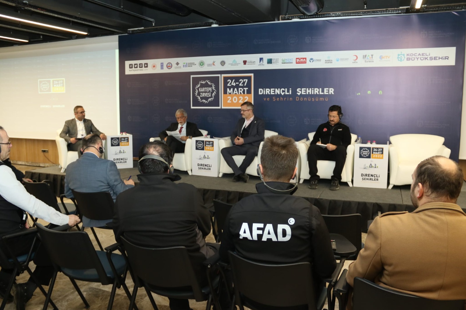 Kocaeli Büyükşehir Belediyesi öncülüğünde, ‘Dirençli Şehirler ve Şehrin Dönüşümü’ temasıyla düzenlenen Kartepe Zirvesi 2022’nin son gün programında Kızılay özel oturumu gerçekleşti. Kocaeli Kongre Merkezi Selim Sırrı Paşa Salonu’nda yapılan özel oturumun moderatörlüğünü Türk Kızılay Genel Müdür Yardımcısı İbrahim Özer üstlenirken, IFRC Türkiye Operasyonlar Müdürü Jonathan Brass, Manchester Üniversitesi Öğretim Üyesi Prof. Mukesh Kapıla ve AFAD Planlama ve Risk Azaltma Dairesi Başkanı Abdulkadir Tezcan, ‘afetlere karşı bireysel ve toplumsal dirençlilik’ konusu hakkında konuşmalar yaptı. AFAD'ın 2009 yılında kurulduğunu hatırlatan Tezcan, afet öncesi çalışmalara da ağırlık verdiklerini söyledi.