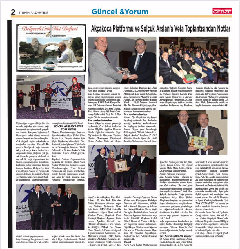 Vefasızlığın yaygın olduğu bir dönemde vefadan söz etmek vefa konuşmak ve vefalı olmak gerçekten önemli. Size göre Vefa nedir ? Bana göre vefalı olmak insan olmanın ön şartı en önemli vasfıdır. Çok değerli vefalı arkadaşlarım tarafından kurulan Kocaeli Akçakoca Gazi’ye de vefa borcunu ödeyerek akça koca ismimi hep ön planda tutan platform çok güzel hizmetler yapıyor. Anlamlı ve önemli bir vefa toplantısına katıldım konuşma yapıp değerli arkadaşımı daha yakından tanıma imkanı buldum. Belgesel çekimi için gittiğim Konya ve Alanya’da olmam dolayısı İle makaleyi biraz geç kaleme alıyorum ancak Gebze gazetesinde yayınlanan haberimizi sizlerle paylaşıyorum.