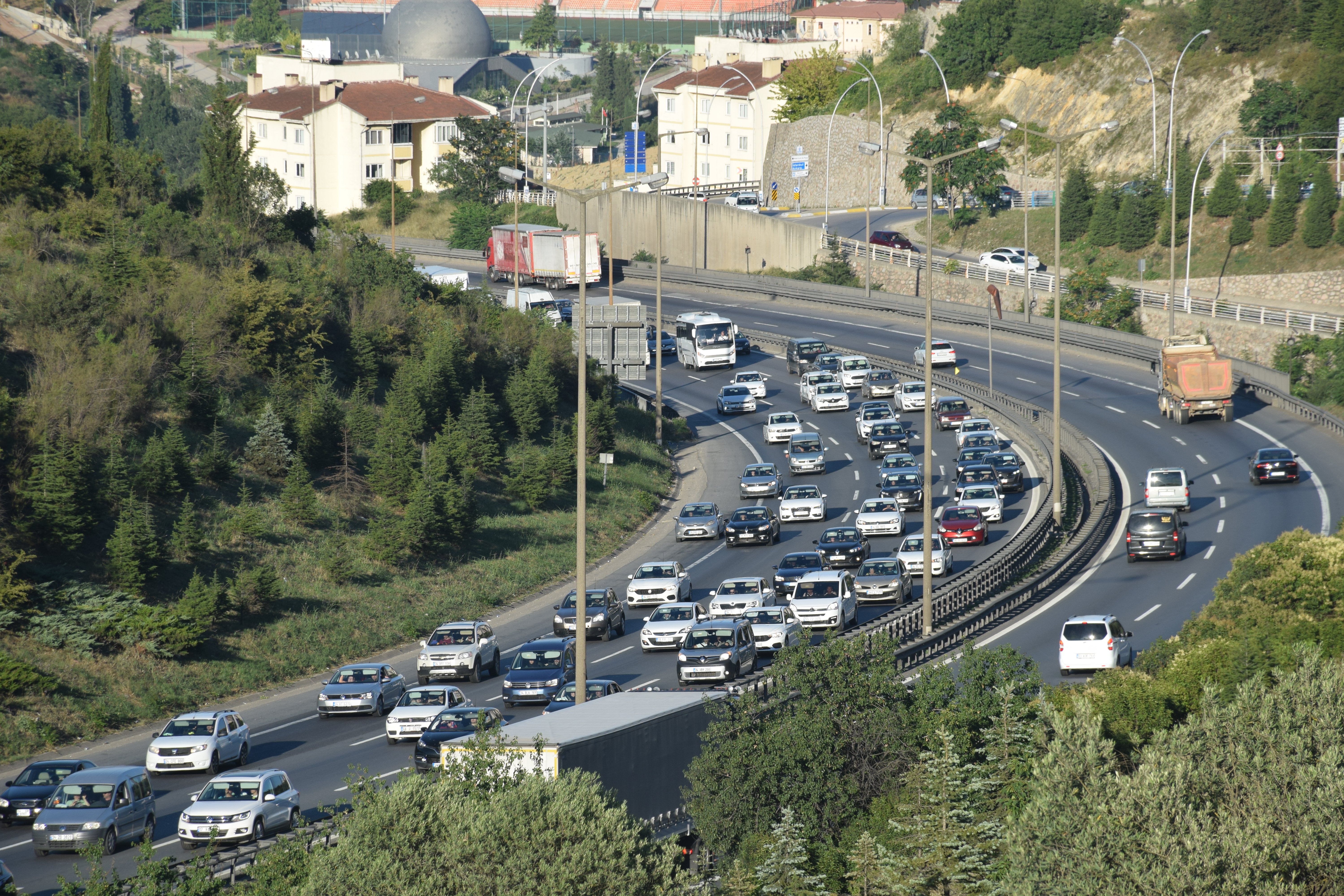 Anadolu Otoyolu'nun İstanbul yönü Kocaeli kesiminde araç kuyrukları oluşmaya başladı.