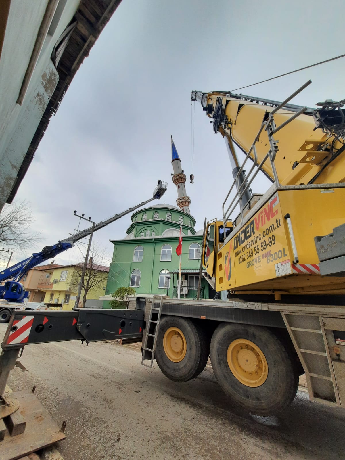 Kocaeli Büyükşehir Belediyesi A Takımı ekiplerince, yaşanan şiddetli lodosun etkisiyle yan yatan İzmit Arızlı Mahallesi’ndeki caminin minaresi, alınan güvenlik önlemlerinin ardından vinçle olay yerinden kaldırıldı. Minare, Büyükşehir tarafından bakım, onarım ve güçlendirme işlemleri yaptırıldıktan sonra, yerine monte edilecek.