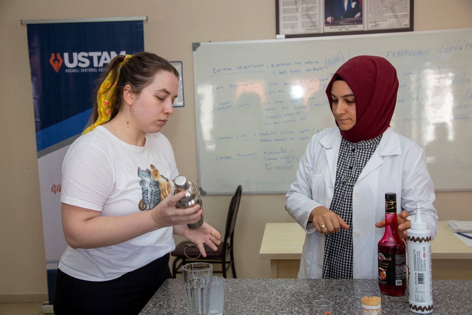 KO-MEK alanında usta eğitmenler eşliğinde iş dünyasının eleman ihtiyacına göre hazırlanan eğitimlerde, kursiyerler seçmiş oldukları branşlarda birer kalifiye eleman olarak yetişme fırsatı buluyor. KO-MEK, Gebze kurs merkezinde USTAM Projesi öncülüğünde açılan barista eğitimi ile yiyecek içecek hizmetleri alanında faaliyet gösteren iş yerlerinin kalifiye eleman ihtiyaçlarını karşılamak için en iyi barista ustalarını yetiştiriyor.