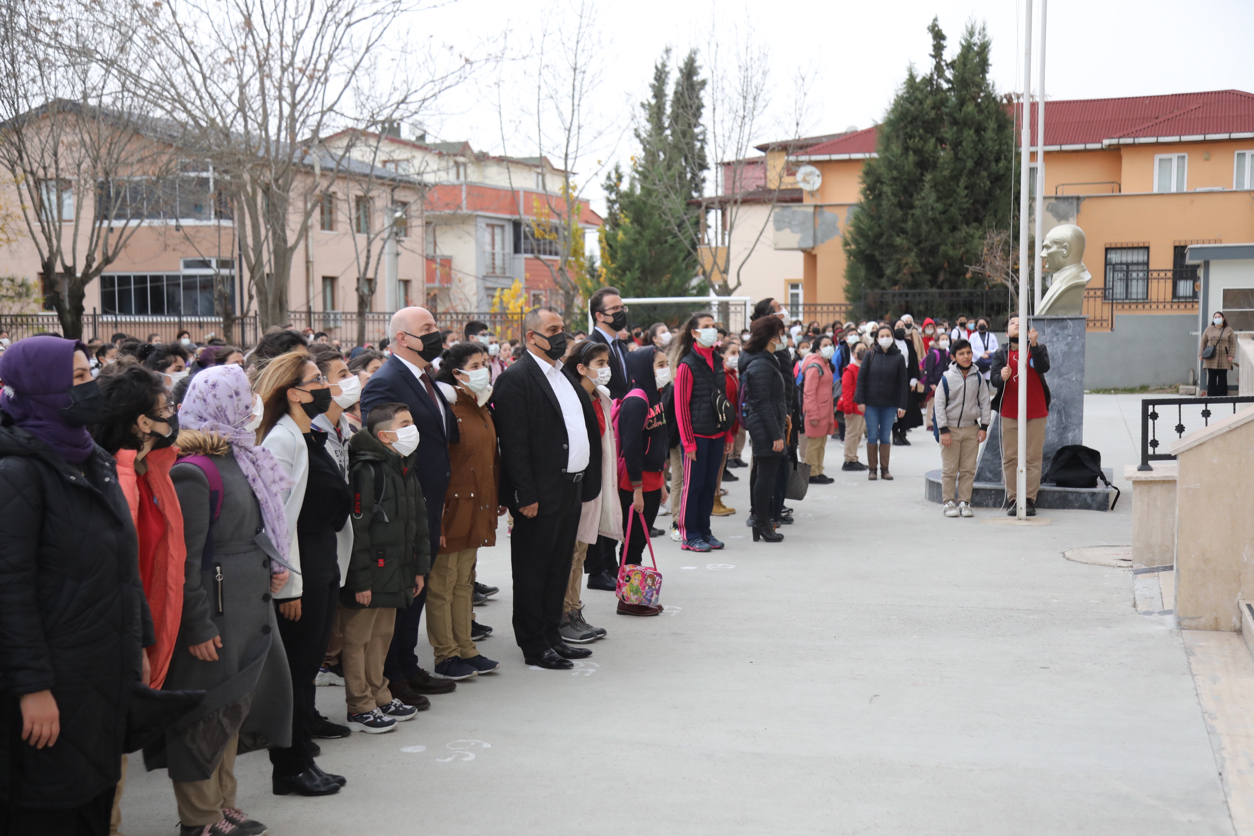 Her hafta farklı bir okulda bayrak törenine katılarak öğrencilerle ve öğretmenlerle buluşan Darıca Belediye Başkanı Muzaffer Bıyık’ın bu haftaki adresi Mehmet Akif Ersoy Ortaokulu'ydu. Öğrencilerle birlikte İstiklal Marşı'nı okuyan Başkan Muzaffer Bıyık, öğrencilere iyi dersler diledi. Bayrak töreninden sonra okul idaresi ve öğretmenlerle de bir araya gelen Başkan Muzaffer Bıyık, okulda görevli öğretmenlerin görüş, istek ve taleplerini de dinledi.