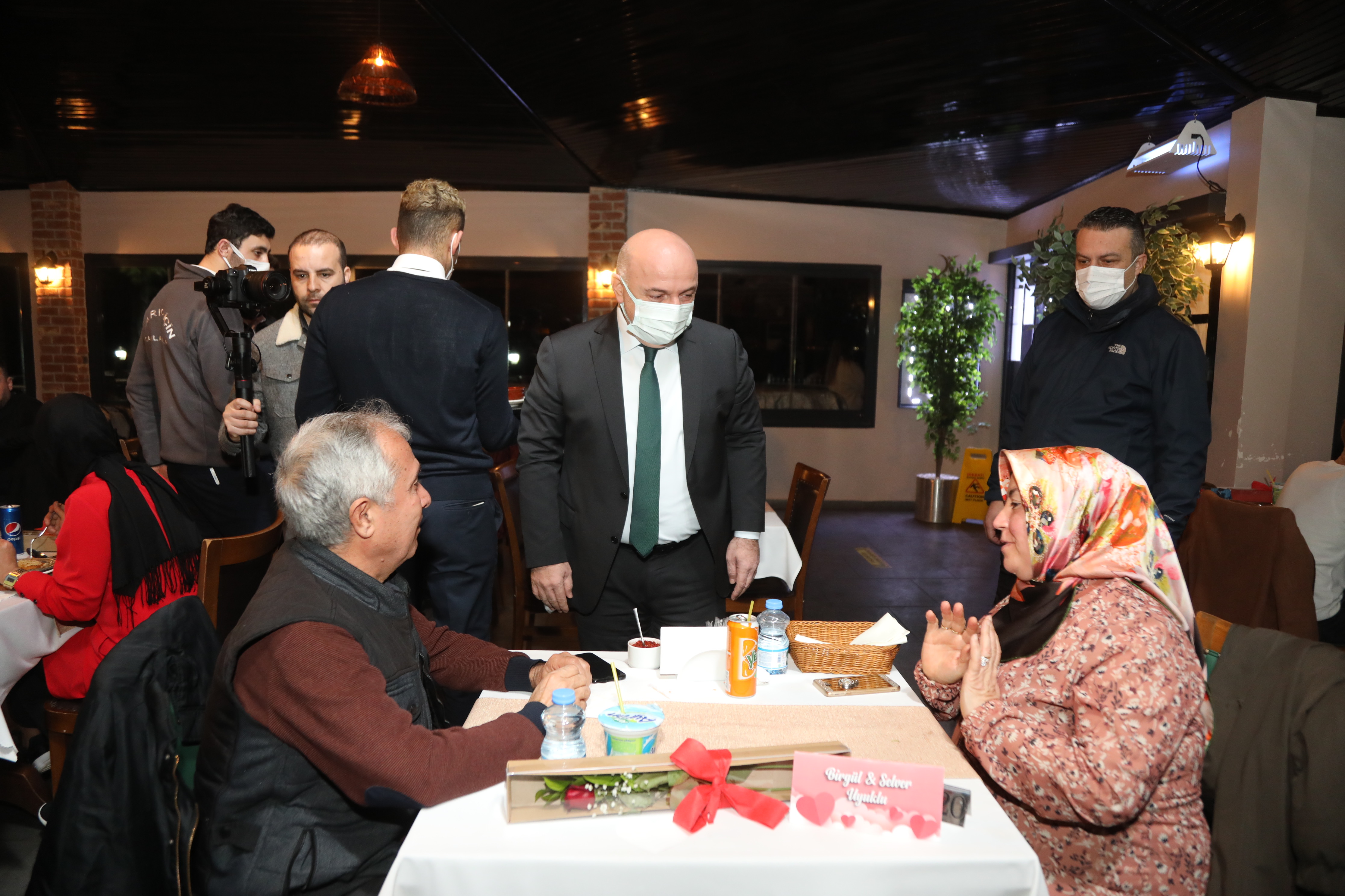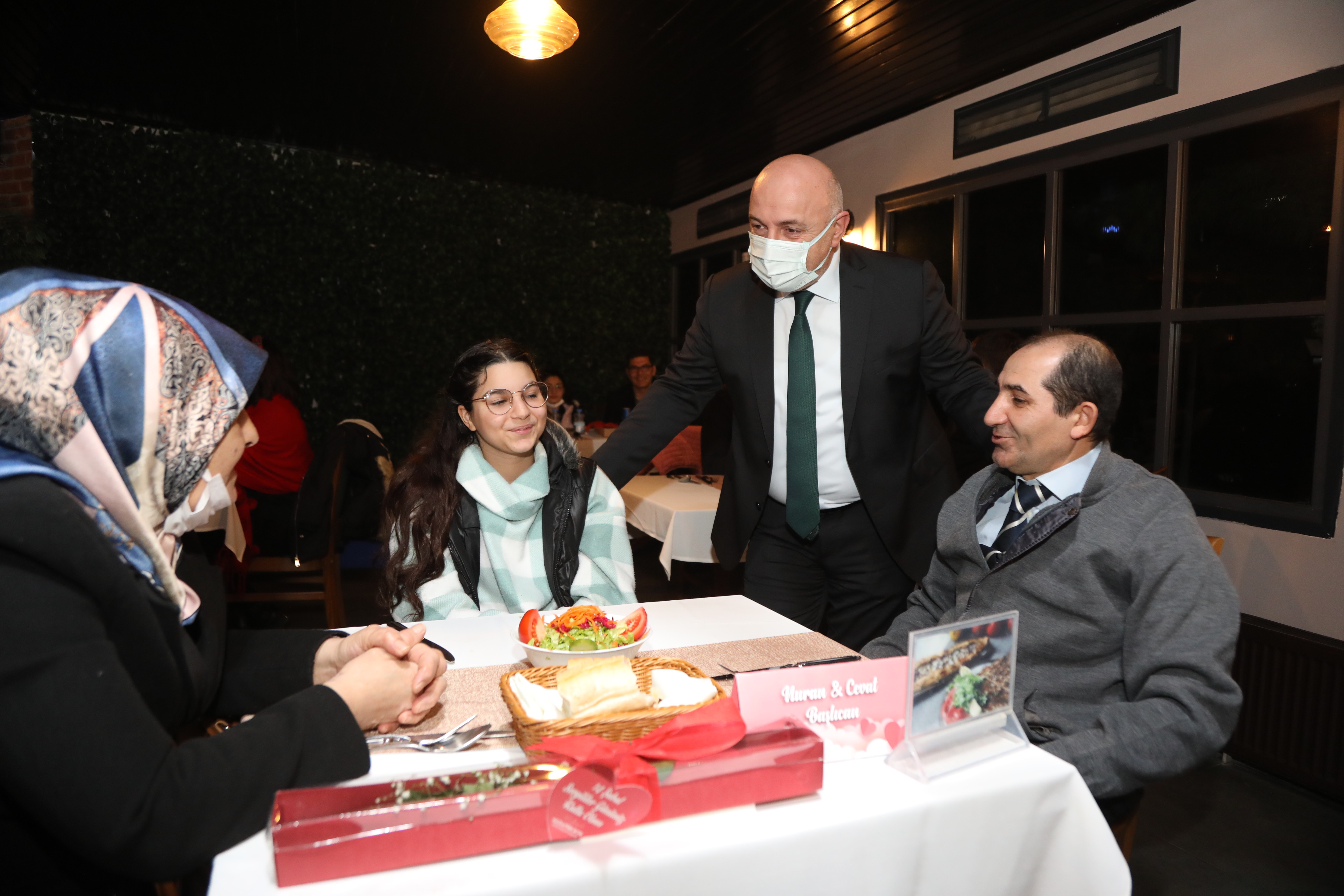 Çekilişi kazanan talihliler Darıca Belediyesi bünyesinde bulunan Deniz Köşkü Restoran’da akşam yemeği yerken Belediye Başkanı Muzaffer Bıyık da çiftlere sürpriz yaparak çiçek hediye etti. Çiftlere selam veren Başkan Muzaffer Bıyık, “Sevgi dünyadaki en kıymetli duygudur. 14 Şubat vesilesiyle tüm insanlarımızın arasındaki sevgi, saygı farkındalığın artması noktasında biz de bir katkıda bulunalım istedik. Çekilişimize katılan tüm hemşerilerime teşekkür ediyor, kazanan talihlilerimizi de tebrik ediyorum. Onların mutluluklarına ortak olmak bizleri de ayrıca mutlu etti” diye konuştu. Başkan Muzaffer Bıyık’ı karşılarında gören Darıcalılar da sürpriz hediyesi ve ilgisi için teşekkür ettiler.