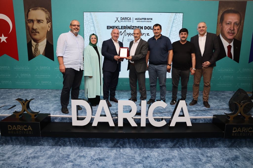 Darıca’ya hizmet etmenin bir bayrak yarışı olduğunu belirten Belediye Başkanı Muzaffer Bıyık, “Şunu bilmenizi istiyorum ki Darıca güzelse sizler sayesinde güzel. Her köşesinde bir emeğiniz var. Emekleriniz için sizlere çok teşekkür ederim. Dün sizler ilçemizi geliştirmek ve güzelleştirmek için çalıştınız. Bugün de sizlerden aldığımız bayrakla ilçemize hizmete biz devam ediyoruz. Emeklilik hayatınızda sizlere ve ailenize mutlu bir hayat diliyorum” diye konuştu.