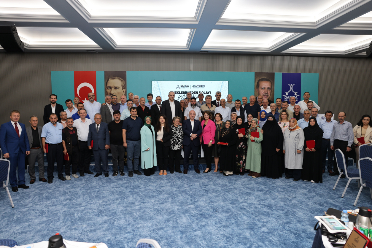 Darıca Belediye Başkanı Muzaffer Bıyık, belediyeye uzun yıllar hizmet verip emekli olan yaklaşık 70 personel için veda yemeği düzenledi. Darıca Balıkçısı Konferans Salonu’nda düzenlenen vefa yemeğine Başkan Muzaffer Bıyık’la birlikte başkan yardımcıları, belediye meclis üyeleri, birim müdürleri ve emekli personeller katıldı.