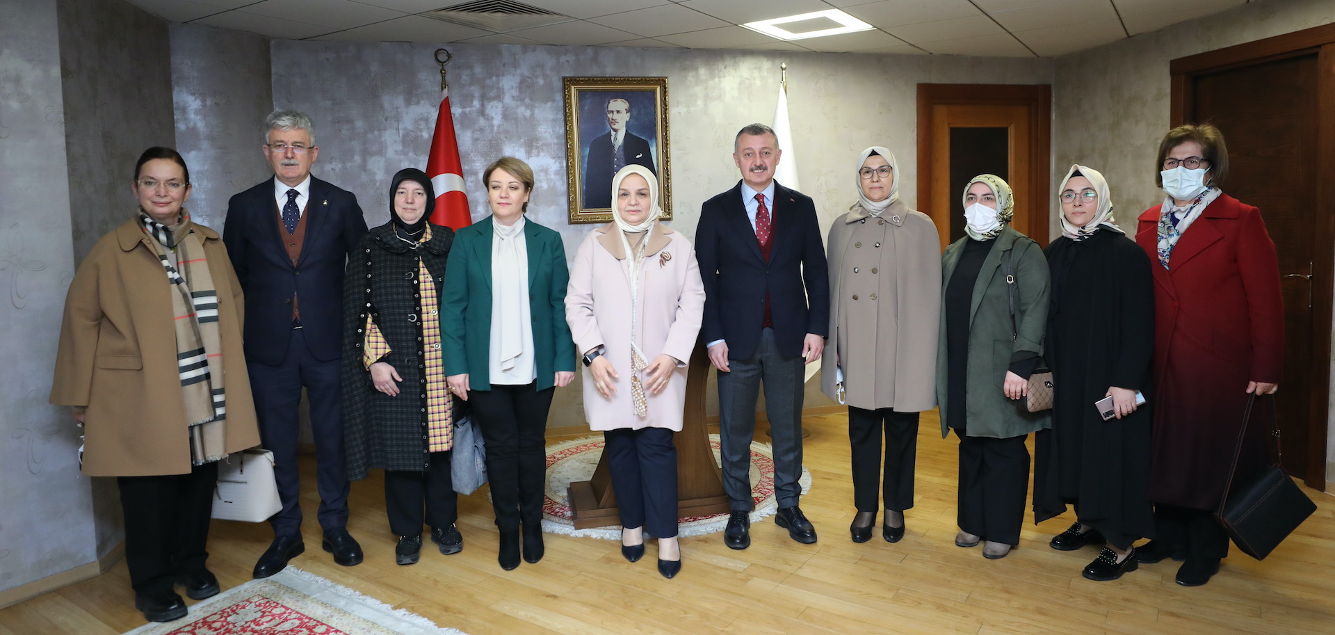 Marmara Belediyeler Birliği ve Kocaeli Büyükşehir Belediye Başkanı Doç. Dr. Tahir Büyükakın, AK Parti Genel Merkez Kadın Kolları Başkanı ve Düzce Milletvekili Ayşe Keşir ile beraberindeki heyeti makamında konuk etti. Kadınlarla Büyük Türkiye Yolunda programına katılmak üzere Kocaeli’ne gelen Keşir’e AK Parti Kocaeli İl Başkanı Mehmet Ellibeş, AK Parti Milletvekili Radiye Sezer Katırcıoğlu, İl Kadın Kolları Başkanı Yasemin Özdemir ve teşkilat üyeleri de ziyarette eşlik etti. Büyükşehir Belediyesi Genel Sekreteri Balamir Gündoğdu’nun da hazır bulunduğu birliktelikte nazik ziyaretleri için Kadın Kolları Başkanı Ayşe Keşir’e teşekkür eden Başkan Büyükakın, kent genelinde yaptıkları hizmetler hakkında konuklarına bilgi aktardı.