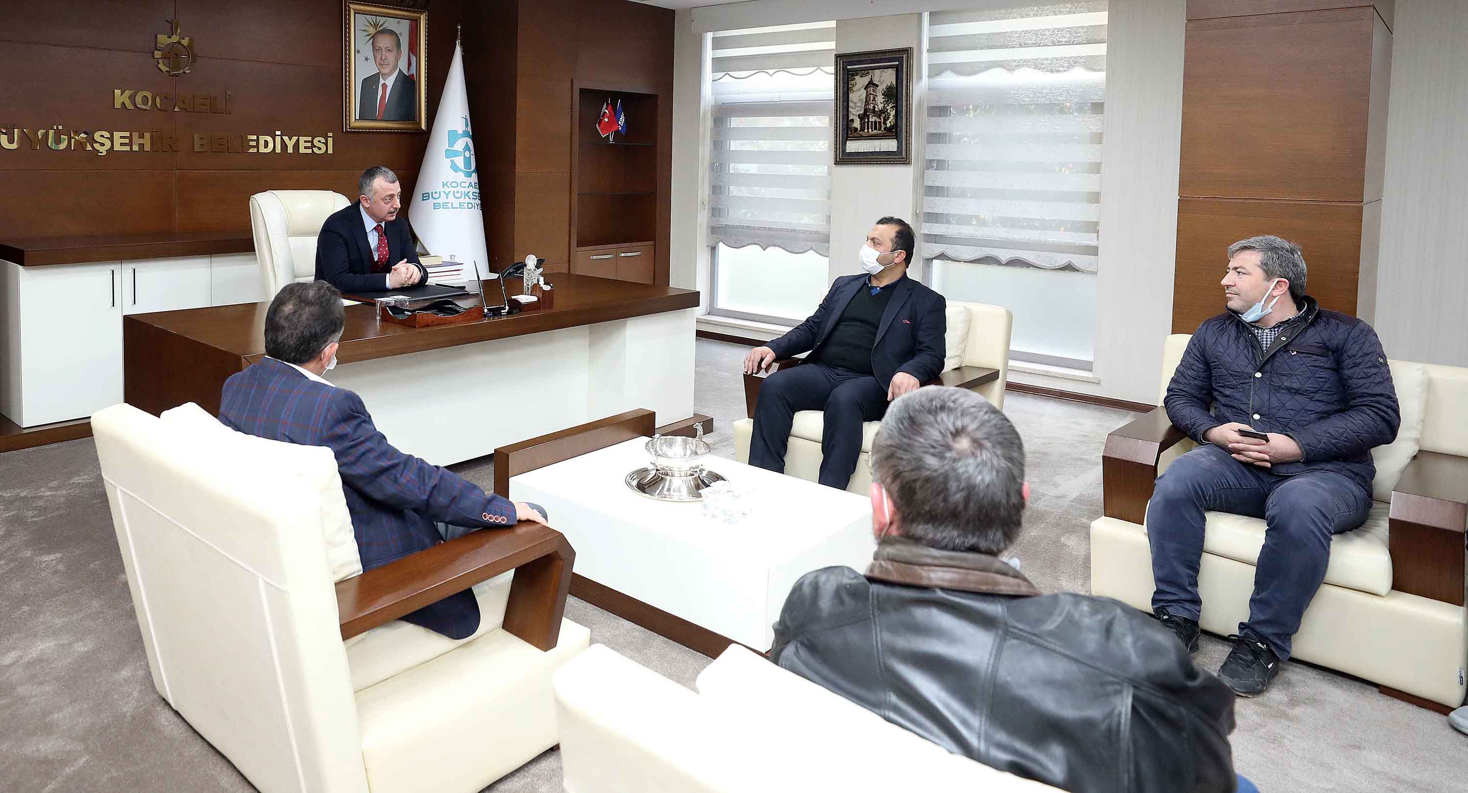 Marmara Belediyeler Birliği ve Kocaeli Büyükşehir Belediye Başkanı Doç. Dr. Tahir Büyükakın, Sivil Toplum Kuruluşları, meslek odaları ve siyasi partilerin yöneticileriyle buluşmalarına devam ediyor. Kentin ortak akılla yönetilmesine önem gösteren Başkan Büyükakın, son olarak Ziraat Mühendisleri Odası Başkanı Özgür Yılmaz, Zafer Partisi İl Başkanı Vedat Çalık, Çayırova Küçük Sanayi Sitesi Yapı Kooperatif Sitesi Başkanı Haydar Demirkıran, Darıca Kent Konseyi Başkanı Orhan Pala ve yönetimlerinin yanı sıra Kocaeli Gönüllü Kültür Teşekkülleri’nin üyeleriyle bir araya geldi. Kentin tüm dinamikleriyle görüş alışverişi yaptıklarını ziyaretlerde dile getiren Başkan Büyükakın, “Hayata geçirdiğimiz tüm yatırımlarımızla yaşanabilir bir çevre ile kimlikli ve sürdürülebilir bir kentleşmenin inşası için çalışıyoruz. Kocaeli Büyükşehir Belediyesi olarak yaptığımız yatırımlar, ürettiğimiz hizmetler ve verdiğimiz desteklerle şehrimizin mutluluğu için çalışıyoruz” dedi.