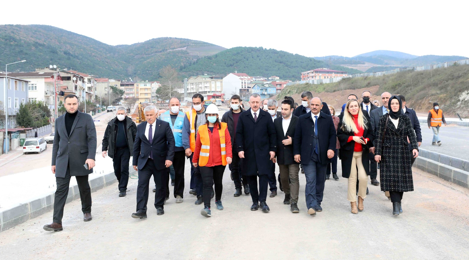 Projenin önemine de dikkat çeken Başkan Büyükakın, “Nihai olarak İlimtepe’ye bağlantı yapılmış olacak. Bu da Körfez için öncelikli bir meseleydi. Bir buçuk ay sonra burası hizmete alınacak. Altta hemen bir kavşak çalışması var. Bitiş noktasında da bir kavşak çalışması var. Özetle 2 kavşak noktası ve bir viyadükle birlikte otoyolu geçerek kuzey ve güney iki yakayı bir araya getirmiş olan daha sonraki dönemde de İlimtepe’ye bağlanacak olan büyük bir ulaşım aksı çalışması. Körfez’in uzun yıllardır beklediği bir çalışmaydı. İnşallah Körfez halkımız buradan azami derecede istifade edecekler.” diye konuştu.