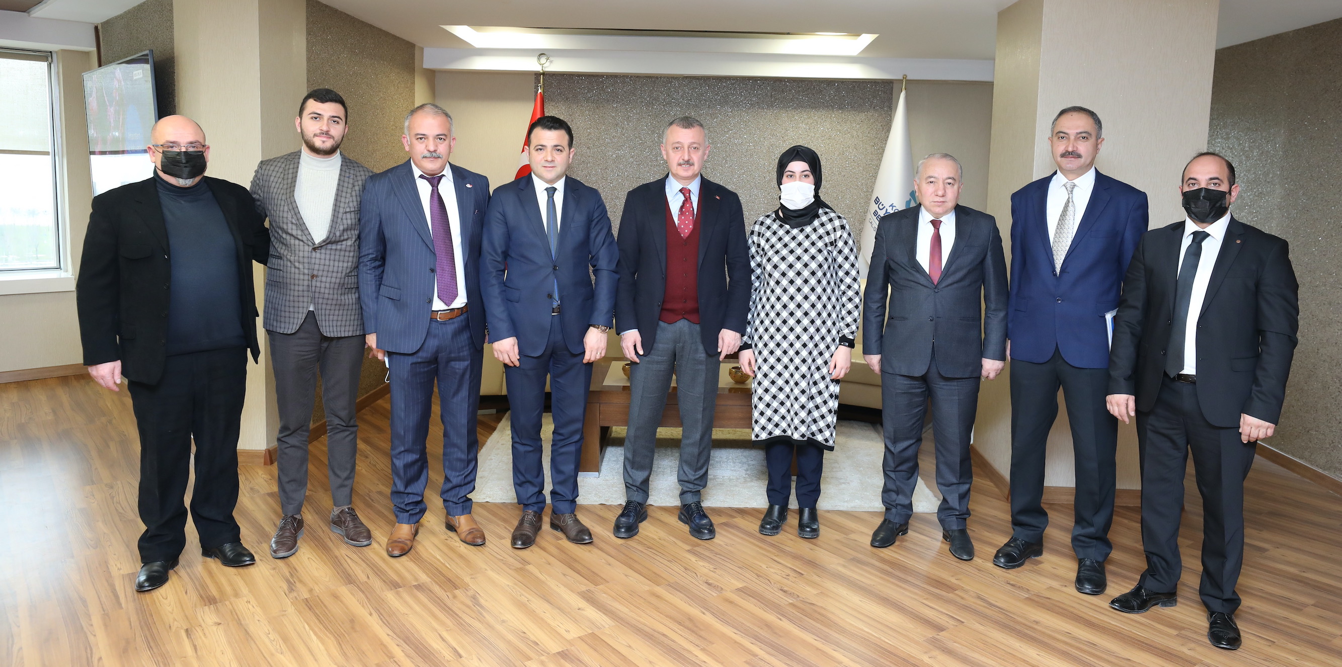 Marmara Belediyeler Birliği ve Kocaeli Büyükşehir Belediye Başkanı Doç. Dr. Tahir Büyükakın, Kocaeli Serhat İlleri Kars Ardahan Iğdır Dayanışma Dernek Başkanı Fuat Katkay ve yönetimini makamında konuk etti. Kentin tamamında ortaya konulan hizmetlerde ortak aklın yer almasına da değinilen birliktelikte konuşan Katkay, “Tahir Başkanımız ilimizde çok önemli hizmetler ortaya koyuyor. Çalışkanlığı ve kent dinamikleriyle olan yakın çalışma anlayışı her kesimden insanımızın takdirini alıyor” ifadelerini sarf etti. Serhat İlleri Derneğinin faaliyetlerini takdir ettiğini ifade eden Başkan Büyükakın ise “Tüm STK’lar başta olmak üzere sizlerin de çalışmalarınızda kadın ve gençlerin daha fazla yer alması daha faydalı projelerin ortaya çıkmasına neden olacaktır” dedi.