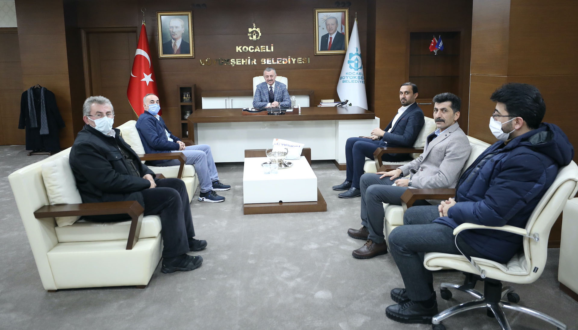 Marmara Belediyeler Birliği ve Kocaeli Büyükşehir Belediye Başkanı Doç. Dr. Tahir Büyükakın, Darıca Bir Umut Engelliler Derneği Başkanı Melek Arıkan, Çayırovaspor Kulüp Başkanı Muammer Aydın, Kocaeli Servis Araçları Odası Başkanı Şenol İkizek, Bakkalcılar ve Büfeciler Odası Başkanı Bayram Kütük, Kızılay Kocaeli Şubesi Kadın Kolları Başkanı Şengül Karagöz, Kocaeli Eczacılar Odası Başkanı Bilal Arpacı, Mimarlar Odası Kocaeli Şube Başkanı Alper Dülger ve yönetimlerinin yanı sıra Cem Vakfı Genel Müdürü Alirıza Kaçan’ı makamında konuk etti. Olağan kongrelerinin sonucunda seçilerek göreve başlayan oda başkanlarını tebrik eden Başkan Büyükakın, ziyaretleri değerlendirirken, “İstişare mekanizmasını sürekli ve etkin bir şekilde işletiyor, kanaat önderlerimizle, gönül insanlarımızla ve Sivil Toplum Kuruluşlarımızla her fırsatta görüşüyoruz” dedi.