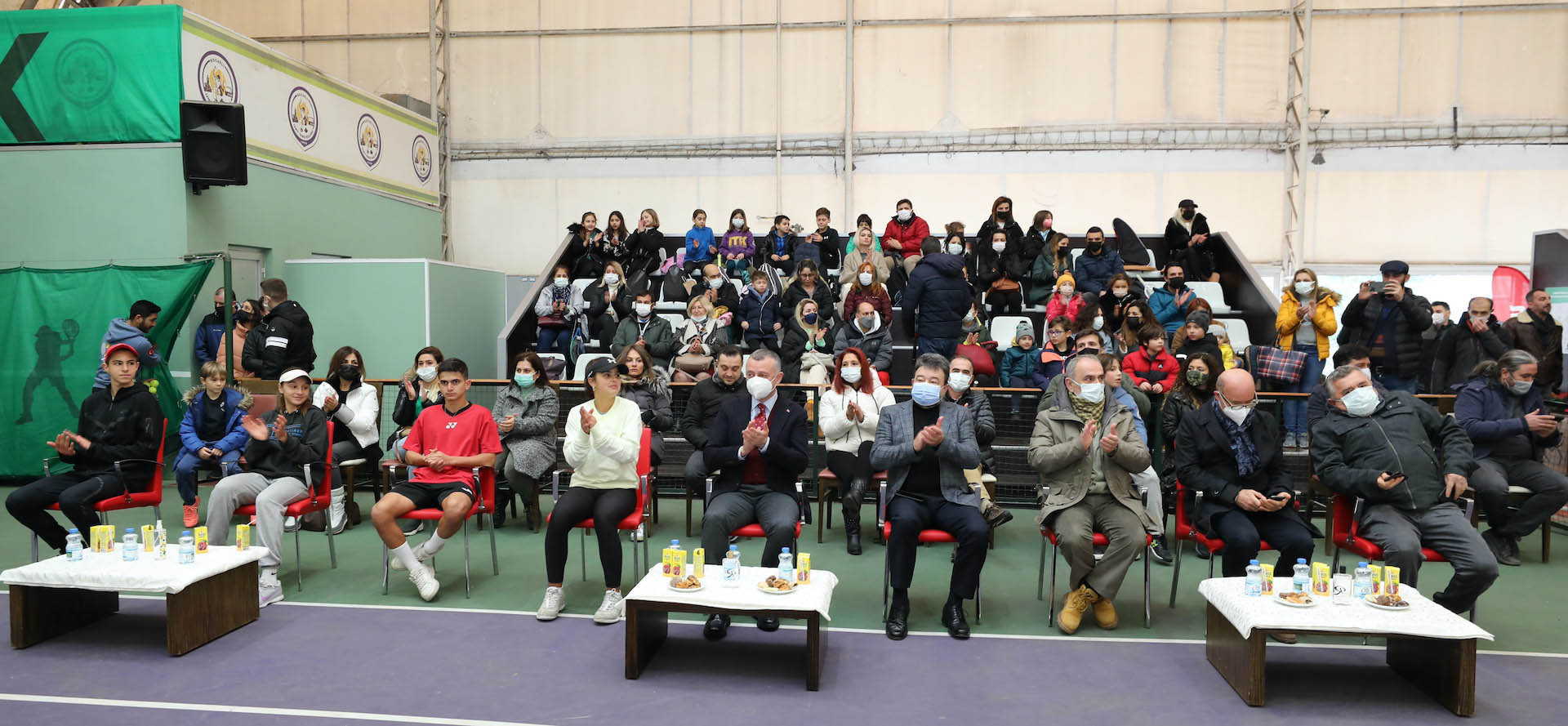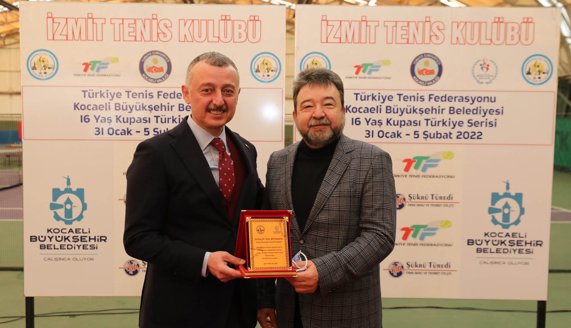 Marmara Belediyeler Birliği ve Kocaeli Büyükşehir Belediye Başkanı Doç. Dr. Tahir Büyükakın, 1999’dan bu yana Türk sporuna birçok milli sporcu, Türkiye Şampiyonları ve yurtdışında tam tenis bursu ile okuyan sporcular kazandırmış ve kazandırmaya devam eden İzmit Tenis Kulübü’nün ev sahipliğinde gerçekleştirilen U-16 Türkiye Tenis Şampiyonası’nın ödül törenine katıldı. İzmitli Şampiyon Tenisçi Duru Kuşçu ile kısa bir süre gösteri maçı da yapan Başkan Büyükakın, sporcularla birlikte hatıra fotoğrafı çektirmeyi de ihmal etmedi. Başkan Büyükakın, kupa töreni öncesi yaptığı konuşmada, hayata geçirecekleri çok daha güzel tenis kortlarının müjdesini de tenis severlerle ve sporcularla paylaştı.