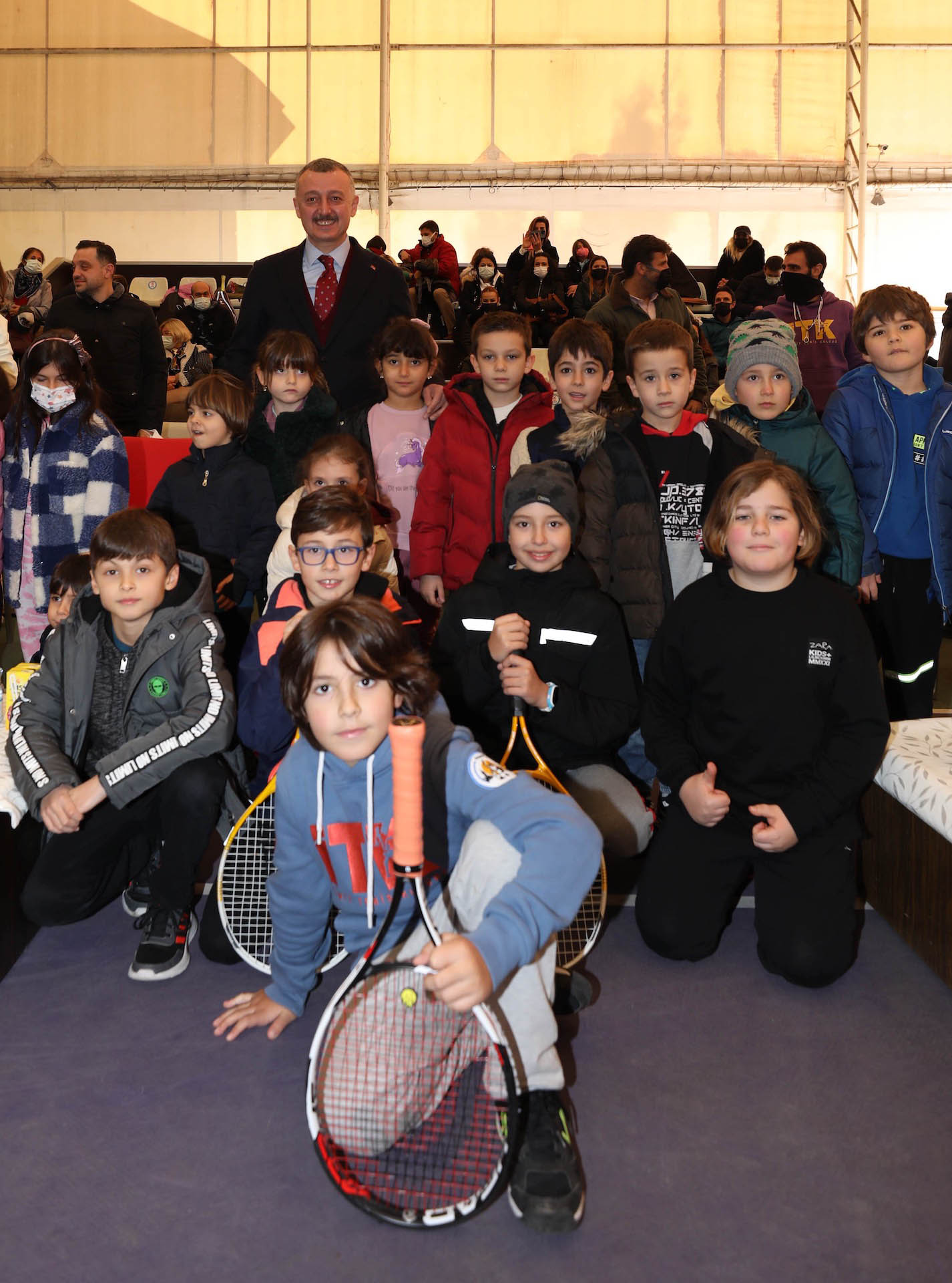 “Buranın yapımında geçmiş dönemlerde ciddi katkılarımız oldu” diyerek konuşmasını sürdüren Başkan Büyükakın, “Şu anda da bu katkılarımız devam ediyor. Bugünün vesilesiyle şunu da söylemek isterim ve vermemiz gereken en önemli müjdemizde şudur. İçinde bulunduğumuz fuar alanında bir yenileme yapılacak. Burası bir Millet Bahçesi formuna dönecek. Dolayısıyla buradaki kortlardan daha iyisini yine bu bölge de daha uygun bir yere yapacağız. Onun çalışmaları devam ediyor. Bir kez daha sporcularımızı ve ailelerimizi tebrik ediyorum. Gördüğüm kadarıyla daha çok anneler emek veriyor. Her birinizi ayrı tebrik ediyorum. İnşallah daha güzel bir mekânda çok daha güzel başarılara imza atarsınız. Kocaeli sporun şehri olma yolunda hızla ilerliyor. Tenis sporunun da bu hedefe çok büyük katkı vereceğine inanıyorum” diyerek konuşmasını tamamladı. İzmit Tenis Kulübü Başkanı Metin Türedi ise “Geleceğimizin teminatı gençlerimize ve tenis sporunun gelişmesine yapmış olduğunuz katkılardan dolayı teşekkür eder, şükranlarımızı sunarız” diyerek Başkan Büyükakın’a plaket takdim etti. Tören çekilen hatıra fotoğraflarının ardından sona erdi.