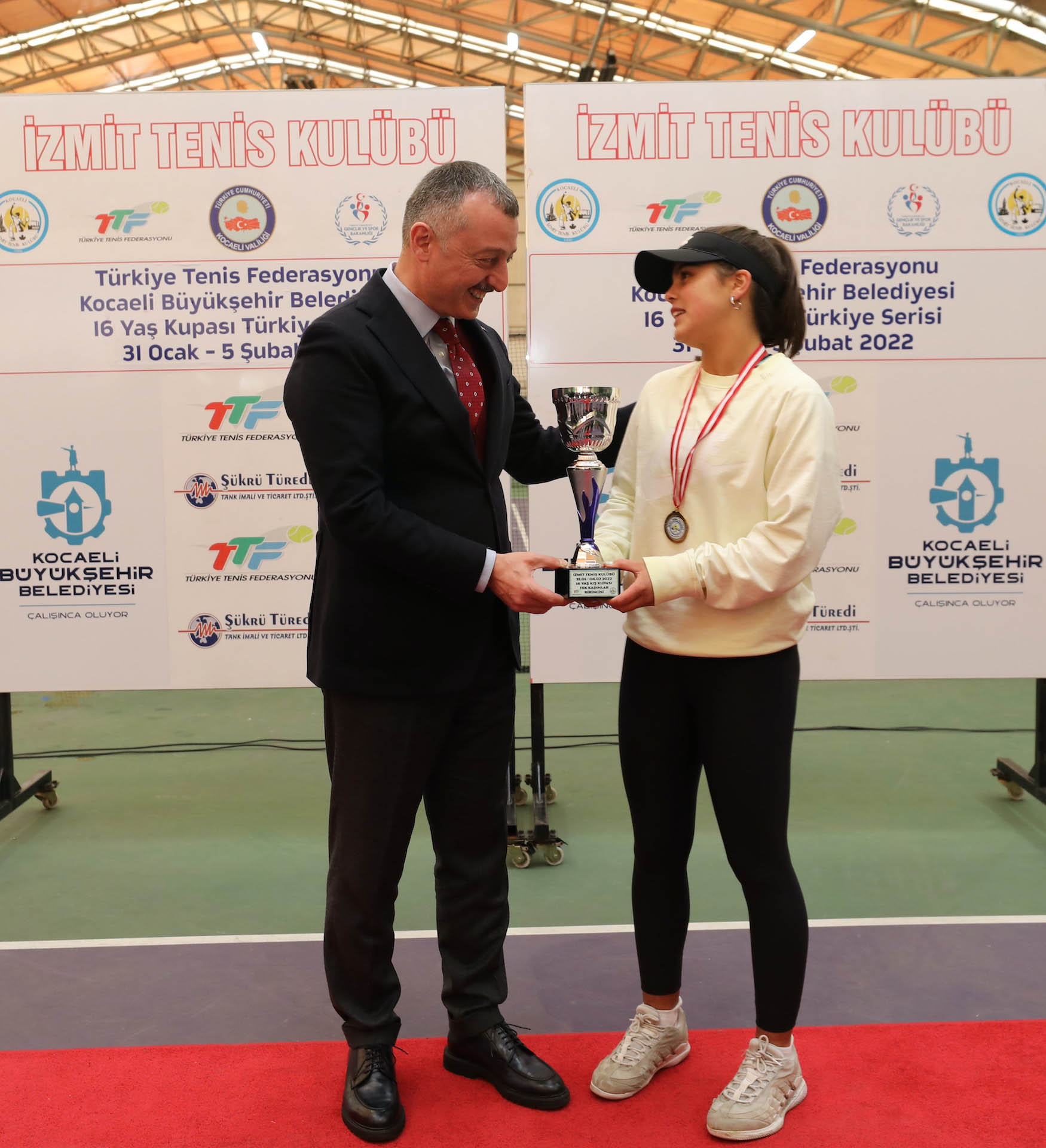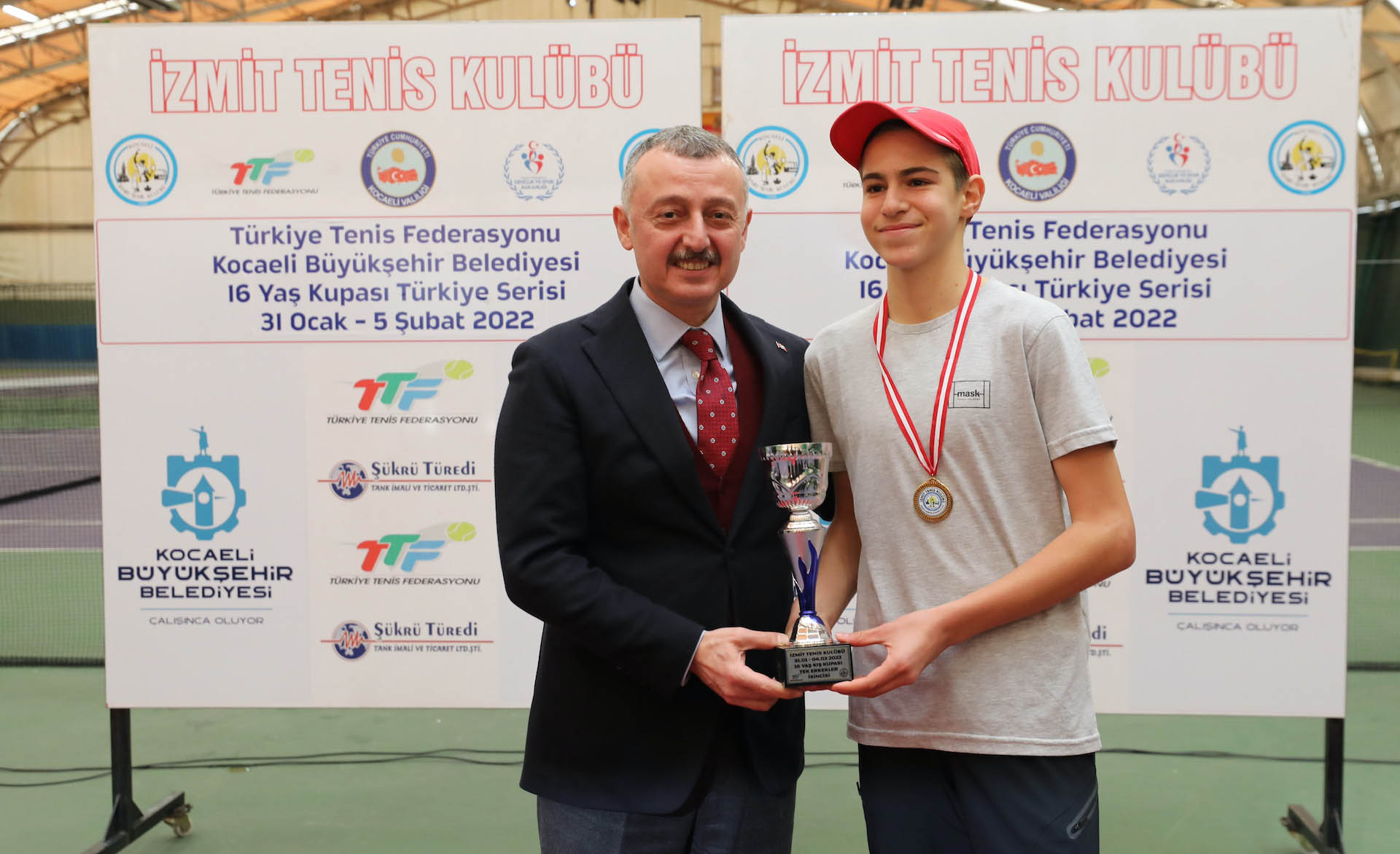 Yetenekli sporcuların yetiştirilmesi kadar Türkiye’de birçok büyük organizasyona da ev sahipliği yapan İzmit Tenis Kulübü yöneticilerini tebrik eden Başkan Büyükakın, TTF ve Okul Sporları Federasyonu tarafından gerçekleştirilecek olan 14 yaş kupası grup şampiyonaları gibi birçok büyük organizasyona da İzmit Tenis Kulübü’nün ev sahipliği yapacağından dolayı memnuniyetini de dile getirdi. 16 Yaş turnuvasına Türkiye’nin değişik illerinde gelen 74 erkek 51 bayan sporcu katılarak yedi gün boyunca çok çekişmeli maçlar sonunda dereceye girenleri tebrik eden Başkan Büyükakın, “Sporcularımızı başarılarından dolayı tek tek kutluyorum. Kocaeli’den de sporcularımızın derece alması bizleri son derece mutlu etti, gururlandırdı” dedi.
